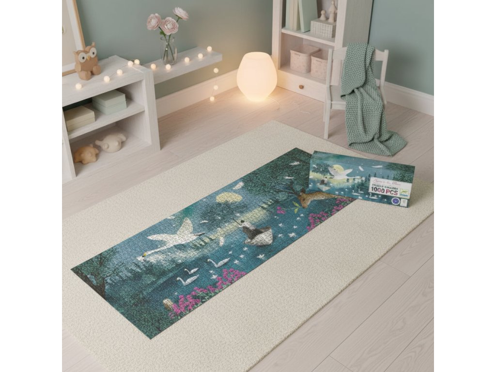 Puzzle Galéria Hymna na mesiac 1000 ks Hymna na mesiac: poetické puzzle Galéria 1000 dielikovPuzzle Galéria Hymna na mesiac 1000 ks je ilustratívne puzzle, ktoré deti vtiahne do príbehu už pri skladaní. Poetická nočná scéna v galériovom štýle – puzzle, ktoré pôsobí ako umelecký plagát.Pri skladaní si užijete veľa jemných prechodov farieb a detailov, ktoré krásne splynú v hotovom obraze. Hotový obrázok je krásny aj na vystavenie – a skladanie pritom prirodzene trénuje sústredenie a trpezlivosť.Rýchly prehľad odporúčaný vek: od 9 rokov počet dielikov: 1000 rozvíja: jemnú motoriku, logiku, vnímanie detailov, trpezlivosť rozmery poskladaného puzzle: 97 × 33 cm v balení: puzzle + obrázková predloha/plagát rozmery balenia: cca 35 × 14 × 7 cmPrečo si ho deti zamilujú pútavá ilustrácia – pri skladaní vzniká malý príbeh kvalitný kartón a presné dieliky pre pohodlné skladanie skvelé na doma aj ako darček pre fanúšikov puzzle krásny tip pre fanúšikov nočných motívov a umeniaObsah balenia 1000× dielik puzzle 1× plagát/predloha na jednoduchšie skladanieTechnické parametre materiál: kartón/papier počet dielikov: 1000 rozmery obrázka: 97 × 33 cm rozmery balenia: cca 35 × 14 × 7 cm