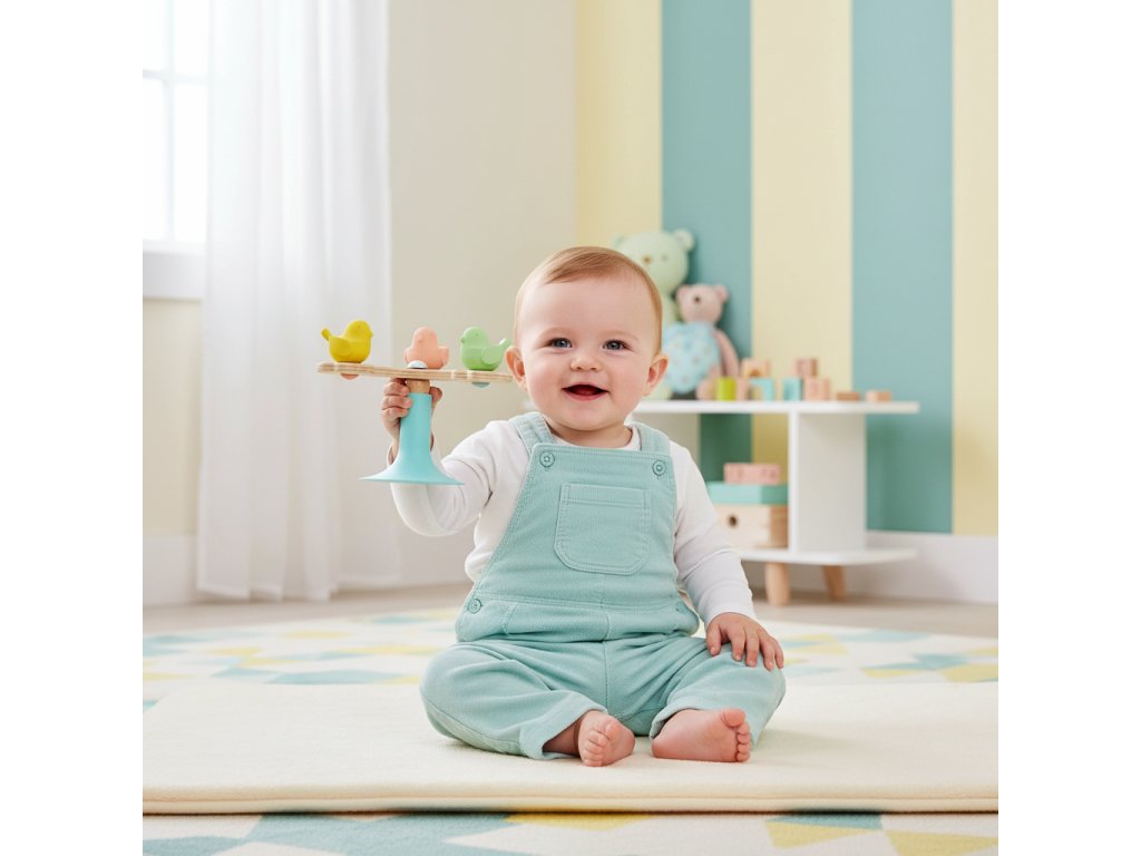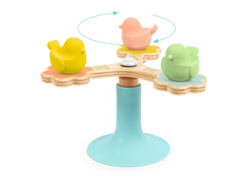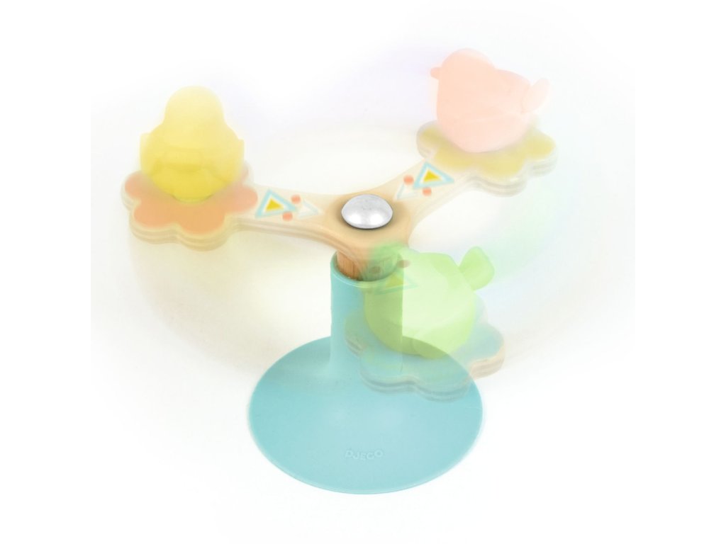 Rotujúca hračka pre najmenších BabySpini Drevená hračka s prísavkou pre deti od 12 mesiacov Objavte BabySpini, rotujúcu vývojovú hračku navrhnutú špeciálne pre deti od 12 mesiacov. Táto hračka vyrobená z prírodného dreva v jemných pastelových farbách je vybavená prísavkou, ktorá sa bezpečne uchytí na akýkoľvek hladký povrch, čo zabezpečuje stabilitu a zábavu počas hry. Hlavným lákadlom BabySpini je plynulé a dlhotrvajúce otáčanie troch roztomilých vtáčikov, ktoré vaše dieťa môže roztočiť pomocou jednoduchej ručičky.Rotujúca vývojová hračka z prírodného dreva s prísavkou pre najmenších Systém guľôčkových ložísk zabezpečuje hladký chod a dlhú životnosť otáčania, čo robí z BabySpini fascinujúcu hračku, ktorú vaše dieťa bude milovať. Silikónová prísavka zvyšuje flexibilitu a bezpečnosť, zatiaľ čo drevo s ekologickým certifikátom FSC® zaručuje šetrnosť k životnému prostrediu. BabySpini nie je len zábavná hračka, ale aj vývojová pomôcka, ktorá podporuje motorické zručnosti a koordináciu rúk a očí. Rozmery produktu sú 11 x 10 x 11 cm, čo je ideálna veľkosť pre malé ručičky. Užite si s vaším dieťaťom hodiny zábavy a rozvoja s BabySpini!