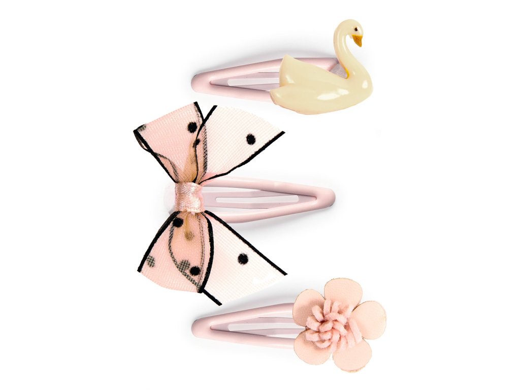 Sada troch sponiek Violette Jemný baletný detail do účesu: 3 sponky s labuťou, mašľou a kvietkom, ktoré držia šetrne a spoľahlivoSada troch sponiek Violette je nežný doplnok do vlasov. V balení nájdeš 3 kovové sponky – každú s inou ozdobou: labuť, mašlička a kvietok. Sponky sa ľahko pripínajú, držia pramienky na mieste a vďaka hladkému povrchu sú šetrné k vlasom – ideálne na každý deň aj na slávnostné účesy.Rýchly prehľad odporúčaný vek: od 3 rokov rozvíja: samostatnosť pri úprave účesu, jemnú motoriku, cit pre štýl v balení: 3× kovová sponka s ozdobouPrečo si ich deti zamilujú 3 rôzne motívy – môžeš ich striedať podľa nálady alebo kombinovať baletná elegancia – labuť a mašľa pôsobia jemne a slávnostne dobré držanie – pomôžu skrotiť ofinu aj jemné pramienky pri tvári šetrné k vlasom – pripnutie bez zbytočného ťahaniaObsah balenia 1× sponka s labuťou 1× sponka s mašličkou 1× sponka s kvietkomTechnické parametre dĺžka sponky: cca 5 cm materiál: kov, akryl, tyl, imitácia kože povrch: hladká úprava pre šetrné uchytenie