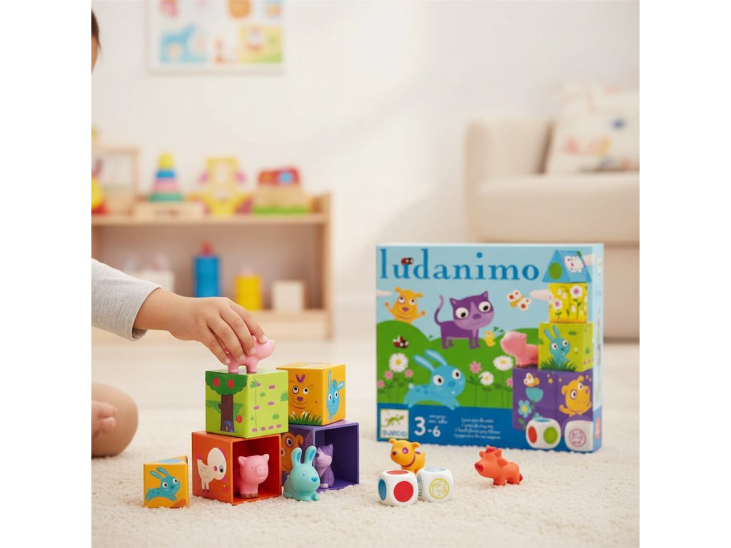 Spoločenská hra Ludanimo 3 hry v jednom pre najmenších: preteky s farbami, pexeso so zvieratkami a balančná veža z kociekLudanimo je krásna spoločenská súprava, ktorá ponúka tri jednoduché hry pre predškolákov – vždy s rovnakými dielikmi, no s iným typom zábavy.Deti si precvičia farby, pamäť aj šikovné pršteky: raz posúvajú zvieratká po dráhe podľa hodu kockou, inokedy hľadajú zvieratká ukryté pod kockami a napokon skladajú a vyvažujú vežu.Rýchly prehľad odporúčaný vek: od 3 rokov (cca do 6 rokov) počet hráčov: 1 – 4 trvanie hry: približne 10 minút (podľa zvolenej hry) rozvíja: rozlišovanie farieb, pamäť, jemnú motoriku, koordináciu oko–ruka, trpezlivosť v balení: 15 kociek rôznych tvarov, 2 kocky, 6 zvieratiek, pravidláPrečo si ju deti zamilujú 3 rôzne hry v jednej krabici – každý deň iná zábava veľké kocky a figúrky sú ideálne do malých detských rúk učí bez nátlaku: farby, pozorovanie, pamäť aj prvé „herné“ pravidlá balančná hra trénuje presnosť pohybov a stabilitu pri skladaní dieliky môžete používať aj voľne – na stavanie a hranie mimo pravidielAko sa s tým hrá Pretekárska hra: postavte dráhu z kociek, hoďte farebnou kockou a posuňte zvieratko na ďalší dielik v danej farbe. Pamäťová hra: dospelý ukryje zvieratká pod kocky, dieťa háda a hľadá – kto nájde správne zvieratko, získava bod. Balančná hra: podľa hodu kockou skladáte kocky a zvieratká tak, aby sa veža nezrútila.Obsah balenia 15× dielik rôznych tvarov (kocky/valce/trojuholníky) 2× kocka (farby, zvieratká) 6× figúrka zvieratka (rôzne zvieratká) 1× pravidlá (pre 3 hry)Technické parametre typ: 3v1 spoločenská súprava pre predškolákov materiál: pevný kartón (dieliky), mäkší plast (kocky a figúrky) témy hier: farby, pamäť, balans a stavanie balenie: väčšia krabica vhodná aj na uloženie dielikov