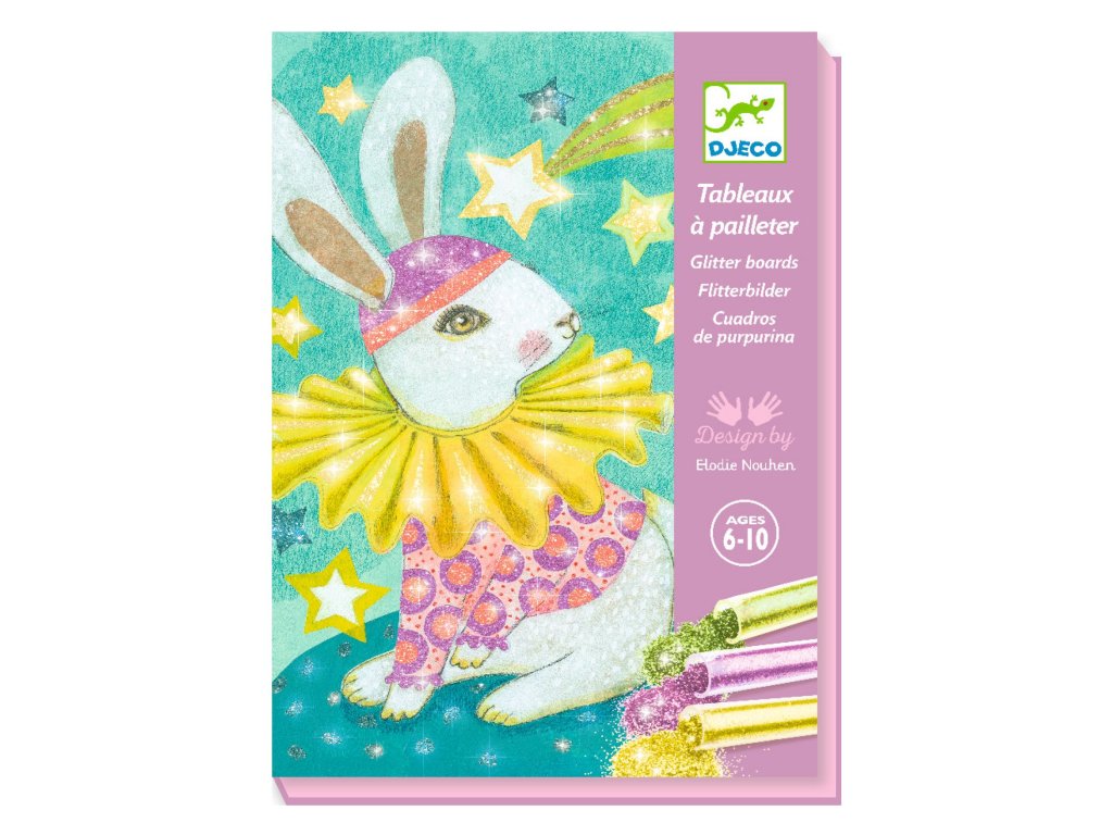Sypanie trblietok Karneval zvieratMaľovanie trblietkami s farebnými zvieratkami – zábavná výtvarná aktivita pre detiKreatívna sada DJECO Karneval zvierat: sypanie trblietok od značky Djeco ponúka deťom originálnu tvorivú aktivitu, pri ktorej dotvárajú obrázky veselých zvierat v karnevalových kostýmoch pomocou trblietok. Čiastočne vyfarbené predlohy so samolepiacimi plôškami umožňujú detskej fantázii zažiariť v každom detaile. Deti najskôr odlepia ochranný papierik z označených lepivých plôch podľa čísel a farebných kódov a následne sypú trblietky priamo na obrázok. Prebytočné trblietky sa dajú jednoducho zotrieť štetcom späť do tuby, takže tvorenie je čisté a prehľadné. Obrázkový návod krok za krokom deti prevedie celým postupom.Čo všetko obsahuje sada4 čiastočne ilustrované obrázky s lepivými plôškami6 túb trblietok v rôznych farbáchplastová špachtlička na odlepovanie papierikaštetec pre úpravu trblietokobrázkový návodPre koho je sada vhodnáTento kreatívny set je odporúčaný pre deti od 6 do 10 rokov, ktoré si chcú bezpečne a hravo vytvárať trblietavé ilustrácie všetkých obľúbených zvieratiek zo zvieracieho karnevalu.Prečo si vybrať túto sadu od Djecojasný obrázkový návodčistý spôsob práce s trblietkami (v boxe alebo priamo v balení)farebné a veselé ilustrácie motivujúce deti k tvorbekvalitné materiály a estetický dizajn značky Djecovhodné pre deti od 6 rokov a pre kreatívne dielne doma či v škole
