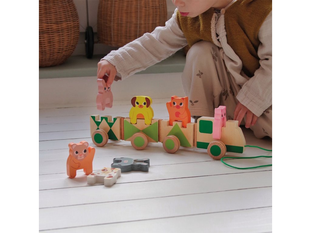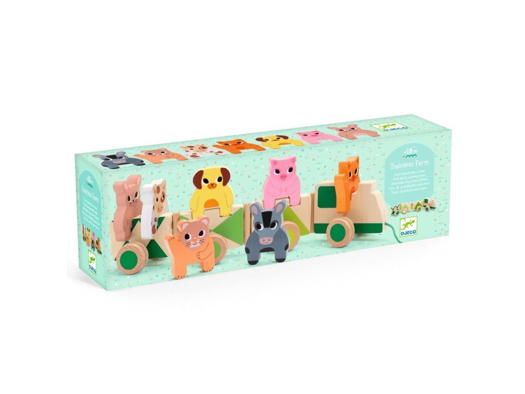 Ťahací vláčik Farma Prvý vláčik na ťahanie: lokomotíva a vagóniky z farmyŤahací vláčik Farma je drevená hračka na ťahanie, ktorá spája pohyb s hraním na farmu.Dieťa vláčik ťahá za šnúrku a sleduje, ako vagóniky poslušne idú za ním – prirodzene tak trénuje rovnováhu, koordináciu a istotu pri chôdzi.Vláčik je zároveň aj hra na príbehy: farmárske motívy a dieliky na vagónikoch motivujú deti vymýšľať si „rozvoz po farme“, nakladať a vykladať, presúvať zvieratká či náklad.Je to ideálny spoločník do izby, kde sa dá hrať pokojne, ale aj v pohybe.Rýchly prehľad odporúčaný vek: od 18 mesiacov rozvíja: hrubú motoriku, koordináciu, stabilitu pri chôdzi, predstavivosť v balení: drevený ťahací vláčik so šnúrkou a farmárskymi prvkami na vagónikochPrečo si ho deti zamilujú vagóniky sa pekne držia na trase – zábava aj pri zatáčaní farmárska téma podporuje rolové hry a príbehy drevo pôsobí príjemne a vydrží časté hranieObsah balenia 1× drevený ťahací vláčik (lokomotíva + vagóniky) 1× šnúrka na ťahanie zvieratká na hranie na vagónikochTechnické parametre materiál: drevo typ hračky: ťahacia hračka / vláčik využitie: doma na podlahe, v izbe, na hranie v pohybe