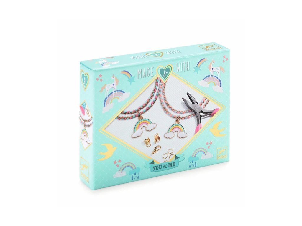 Náramky Dúha sú kreatívna sada, s ktorou si deti vyrobia dva pletené náramky podľa tradičnej japonskej techniky kumihimo. Vďaka pletiacemu kotúču a jednoduchému postupu vznikne krásny výsledok aj bez predchádzajúcich skúseností.