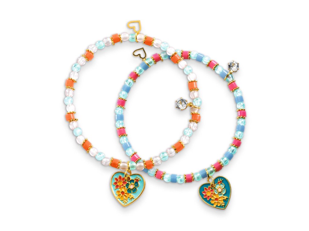 Tvorenie náramkov priateľstva Láska Upleť 2 náramky plné lásky: jeden pre seba, jeden pre niekoho blízkehoTvorenie náramkov priateľstva Láska je kreatívna sada na výrobu dvoch náramkov. Deti navliekajú korálky, kombinujú ozdoby a vytvoria šperky, ktoré môžu darovať v organzovom vrecúšku spolu s krátkym odkazom na ilustrovanej kartičke.Rýchly prehľad odporúčaný vek: od 6 rokov rozvíja: jemnú motoriku, trpezlivosť, estetické cítenie, kreativitu v balení: materiál na 2 náramky: korálky, prívesky, niť, ihly, doplnkyPrečo si ju deti zamilujú vytvoria si 2 hotové náramky – okamžitý výsledok kombinovanie korálok a príveskov rozvíja tvorivosť skvelé na darček: kartičky + organzové vrecúška jemné navliekanie trénuje sústredenie a presnosťAko to funguje Vyber si farby korálok a priprav elastickú niť. Pomocou ihly navliekaj korálky a pridaj prívesky podľa návodu alebo vlastného nápadu. Urob pevný uzlík, schovaj ho medzi korálky a náramok je hotový.Obsah balenia 150× korálky 6× prívesok/ozdoba 2 m elastická niť 2× ihla 1× obrázkový návod 2× organzové vrecúško 2× ilustrovaná kartička na odkazTechnické parametre odporúčaný vek: od 6 rokov rozmery balenia: 16 × 12 × 3 cm
