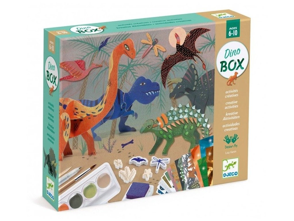 Veľká kreatívna sada Dinosaury je bohatý kreatívny set, ktorý deti vtiahne do pravekého sveta cez rôzne výtvarné techniky. V jednej krabici nájdu až 6 aktivít – od skladania 3D dinosaurov a tvorenia 3D koláží, cez pečiatkovanie a kreslenie, až po efektné vyškrabávanie, metalické fólie a maľovanie vodovkami.