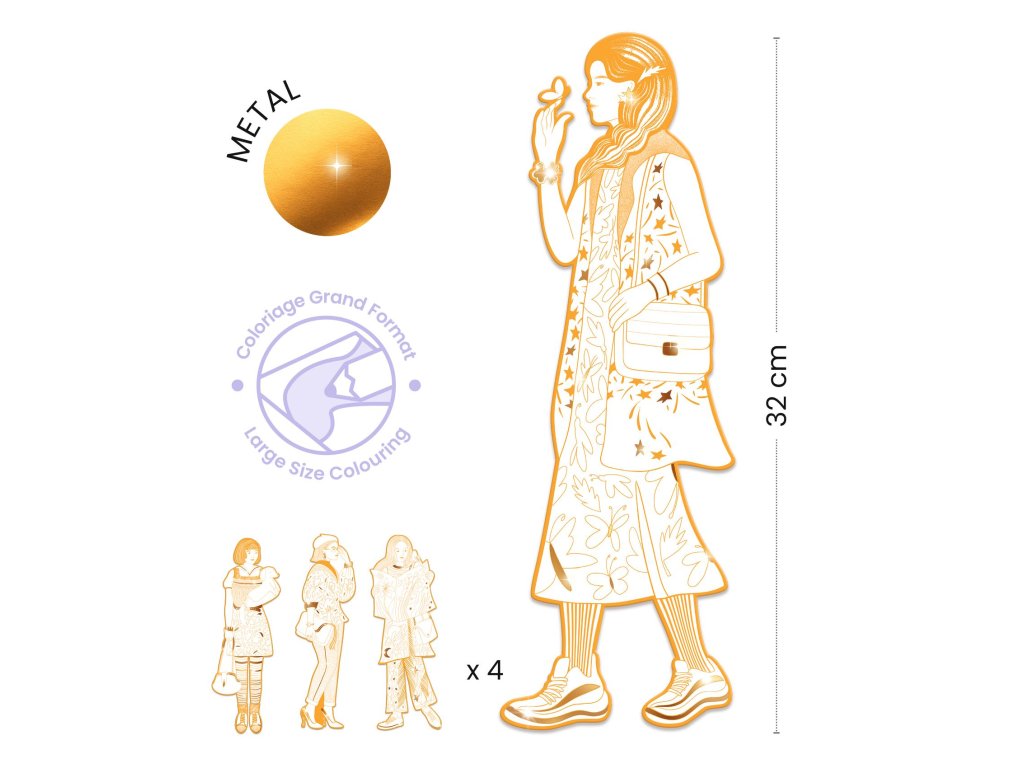 Veľké maľovanky Scout a priateľky Elegantné siluety na vystavenie: 4 veľké maľovanky postáv s metalickými detailmiVeľké maľovanky Scout a priateľky z kolekcie Mladé dámy sú siluetové maľovanky – každá má tvar celej postavy.Outfity sú bohato vzorované a niektoré línie a plôšky majú jemný metalický lesk, takže výsledok pôsobí naozaj štýlovo.Maľovanky sú z pevnej lepenky, a preto sa hotové postavy skvelo hodia na vystavenie.Rýchly prehľad odporúčaný vek: od 6 rokov rozvíja: sústredenie, trpezlivosť, cit pre farby a detail čo deti vytvoria: 4 veľké vyfarbené postavy (cca 18 × 32 cm)Prečo si ich deti zamilujú siluetový tvar postáv – vyzerá to ako plagát metalické prvky dodajú obrázkom eleganciu pevný materiál – hotové maľovanky sa dajú vystaviť a dlho vydržiaObsah balenia 4× siluetová maľovanka z pevnej lepenkyTechnické parametre vek: od 6 rokov počet kusov: 4 rozmer: približne 18 × 32 cm materiál: papier/lepenka (FSC®), metalická tlač