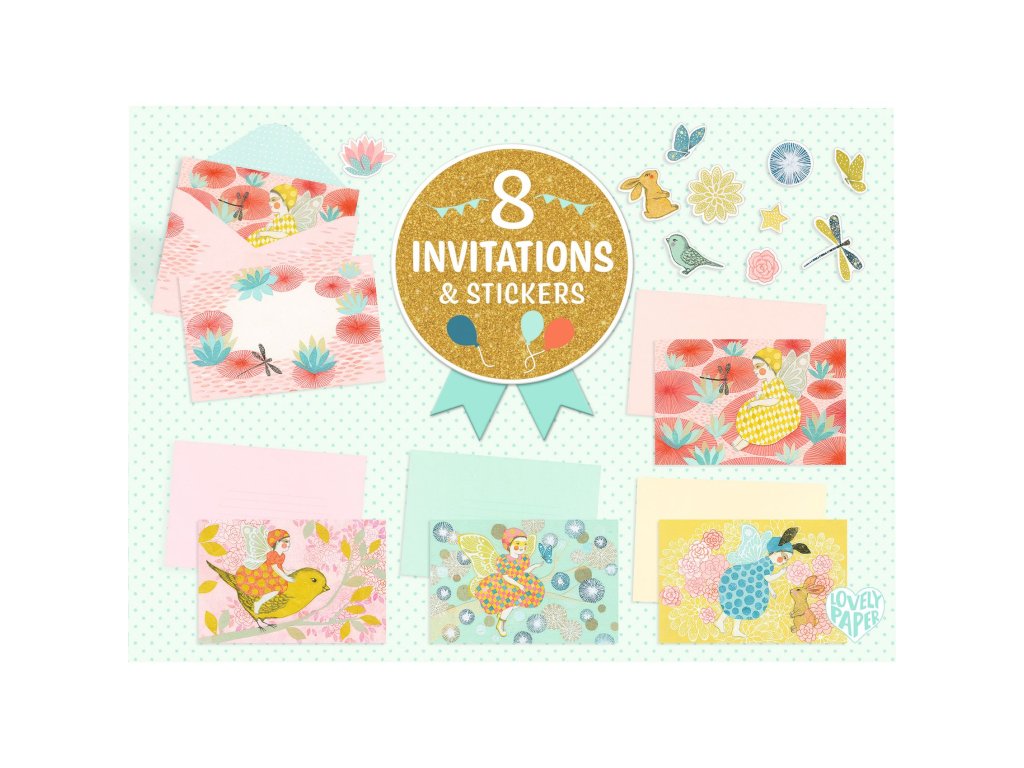 Víly: 8 pozvánok & samolepkyVeselá sada na oslavy a tvorenieVíly: 8 pozvánok a samolepiek je zábavná sada pre deti, ktorá obsahuje 8 farebných pozvánok, 8 ilustrovaných obálok a samolepky na ich ozdobenie. Sada je ideálna na narodeninové oslavy, tematické párty alebo na tvorivé aktivity. Dizajn má metalické detaily a matnú potlač.Prečo si vybrať sadu od Djeco8 pozvánoksamolepky na ozdobenieskvelé na oslavy a tvorivé hryObsah balenia8 kusov pozvánok s ilustráciami8 obálok2 hárky samolepiek na zdobenie