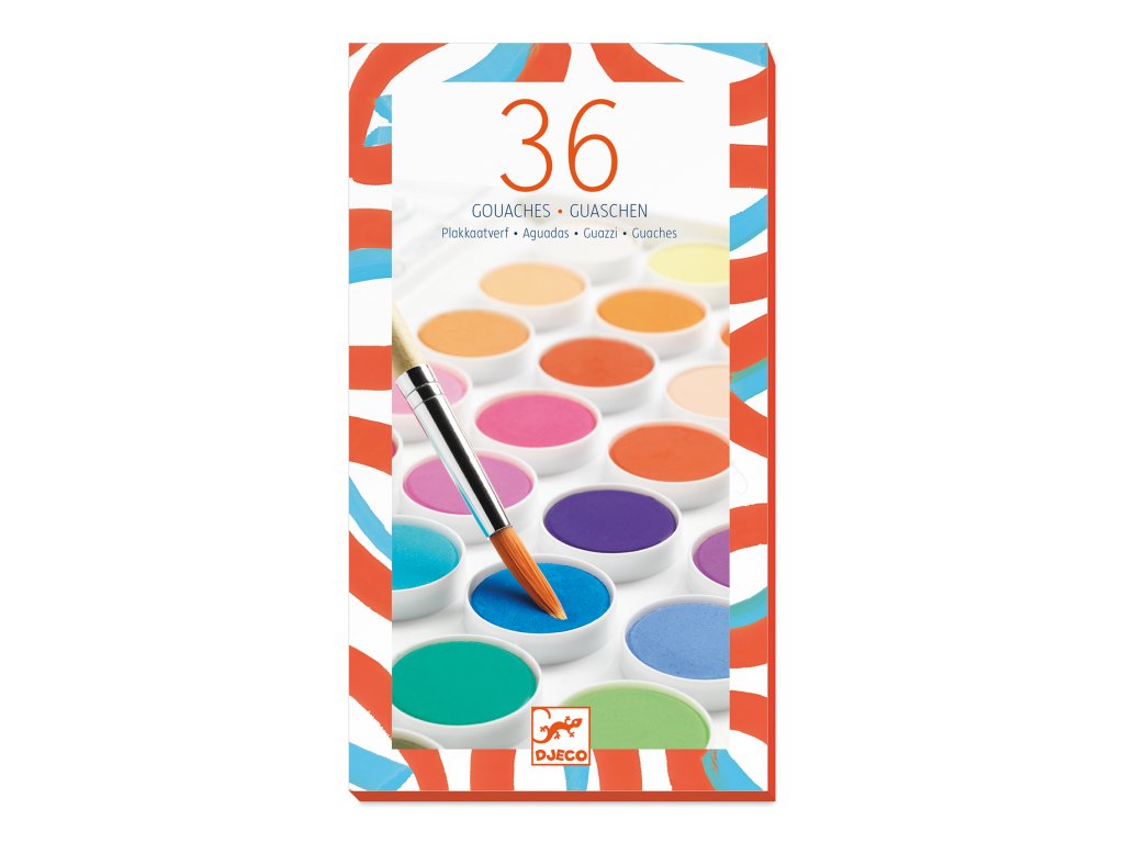 Vodové farby 36 farieb Klasické vodové farby pre malých umelcovVodové farby riediteľné vodou sú určené na maľovanie na papier a iné savé materiály. Praktická sada vodových farieb pre deti obsahuje 36 štandardných farieb a štetec.Nevyhnutná výbava nielen do škôlNevyhnutná súčasť pri maľovaní na výkres. Farby sú sýte a obsahujú veľký objem pigmentu.