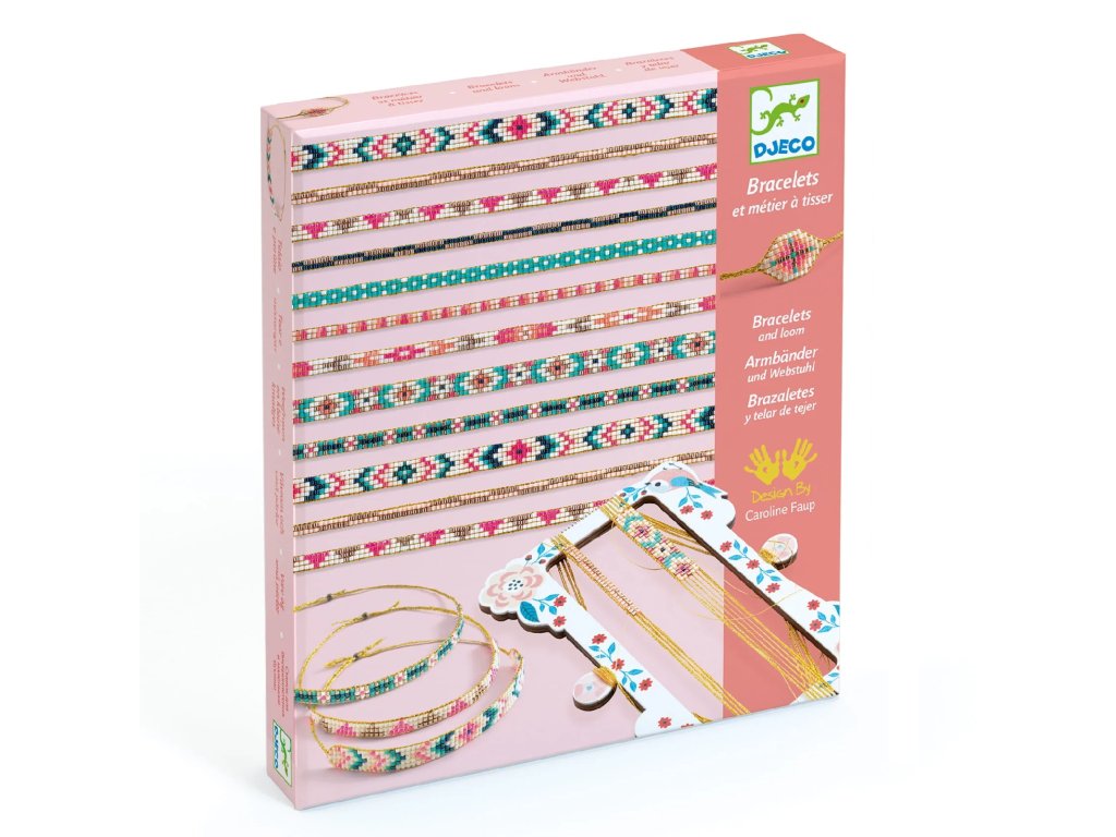 Výroba tkaných náramkovKreatívna sada na výrobu farebných korálkových náramkovPomocou tejto sady si deti môžu vlastnoručne vytvoriť krásne farebné náramky technikou tkania. Sada obsahuje všetko potrebné pre začiatok – rámček, nite, korálky a obrázkový návod, ktorý deti krok za krokom prevedie výrobou unikátnych náramkov.Prečo si vybrať túto kreatívnu sadu od Djeco• vhodné pre deti od 8 rokov• jednoduché tkanie podľa obrázkového návodu – vhodné aj pre začiatočníkov• podpora tvorivosti a fantázie – deti si môžu vymýšľať vlastné vzory• rozvíja jemnú motoriku a koncentráciu pri navliekaní a tkaní korálok• originálne výsledky – každé dieťa vytvorí jedinečné náramkyObsah balenia• rámček na tkanie• 2 x niť• 8 x tuba farebných korálok• obrázkový návod na tvorbu vzorov