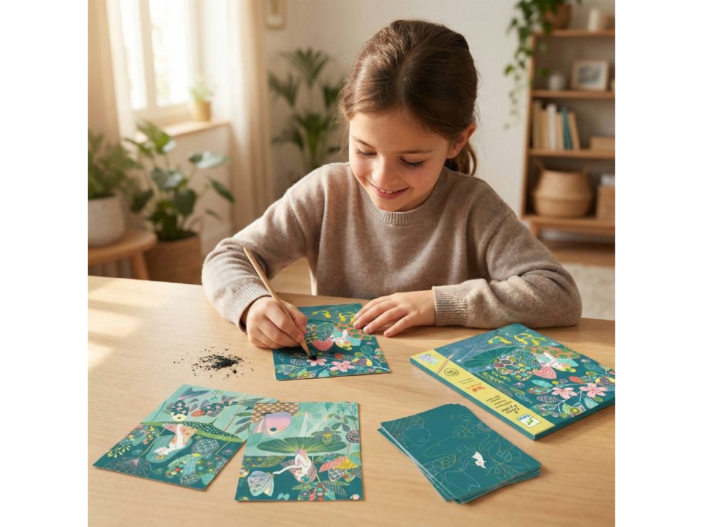 Vyškrabovacie obrázky Jazero s dúhovým leskom Jazerné prekvapenia pod povrchom: vyškrabuj vzory a odhaľ dúhové metalické odlesky na 4 obrázkochVyškrabovacie obrázky Jazero s dúhovým leskom sú tvorivá sada, v ktorej deti postupne odhaľujú skryté ilustrácie vyškrabovaním povrchovej vrstvy.Kartičky majú špeciálne dúhové, metalicky lesklé efekty, vďaka ktorým hotové obrázky žiaria a menia sa podľa svetla.Dieťa pracuje s obojstranným dreveným perom a podľa ilustrovaného návodu vyškrabuje pripravené línie a ornamenty.Krok za krokom sa objavujú detaily „jazerného sveta“ – voda, rastliny aj drobné prekvapenia ukryté v ilustrácii.Rýchly prehľad odporúčaný vek: 7 – 12 rokov rozvíja: jemnú motoriku, presnosť, sústredenie, trpezlivosť, cit pre detail v balení: 4 vyškrabávacie kartičky 15 × 20 cm, drevené pero, farebný návodPrečo si ich deti zamilujú magický efekt – dúhové odlesky sa ukazujú pri každom ťahu tiché tvorenie „bez neporiadku“ – bez farieb a bez lepidla jasný postup podľa návodu, no stále priestor na vlastné vzory 4 hotové obrázky – skvelý pocit z dokončeného dielaAko to funguje Vyber si kartičku a polož ju na rovný, pevný povrch. Pomocou pera jemne vyškrabuj línie a plochy podľa farebného návodu. Striedaj tenké a širšie ťahy – vytvoríš textúry, vzory a lesklé detaily. Hotový obrázok jemne očisti od prachu z vyškrabovania.Obsah balenia 4× vyškrabávacia kartička (15 × 20 cm) s dúhovými odleskami 1× obojstranné drevené pero 1× farebný návod krok za krokomTechnické parametre materiál: kartón/papier, drevo počet obrázkov: 4 rozmer kartičiek: 15 × 20 cm rozmery balenia: cca 22 × 23 cm