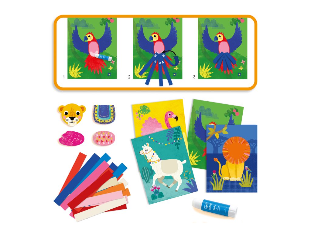 Výtvarná sada Papierové prúžky Koláž, ktorá vystúpi z obrázka: nalep papierové prúžky a vytvor 3D srsť, hrivu aj periePapierové prúžky sú tvorivá kolážová sada pre najmenších, vďaka ktorej si deti vytvoria 4 veselé obrázky zvieratiek.Stačí nalepiť farebné papierové prúžky do pripravených miest, jemne ich zatočiť do „slučiek“ a obrázok získa krásny plastický 3D efekt.Na záver sa doplnia kartónové dieliky, ktoré obrázky výrazne oživia.Rýchly prehľad odporúčaný vek: 3–6 rokov rozvíja: jemnú motoriku, koordináciu oko–ruka, trpezlivosť, tvorivosť v balení: 4 obrázky, farebné papierové prúžky, doplnkové dieliky, lepidlo, obrázkový návodPrečo si ju deti zamilujú okamžitý 3D výsledok – slučky a prúžky dodajú obrázkom objem tvorenie je jednoduché a prehľadné – ideálne pre predškolákov trénuje presnosť pohybov pri nanášaní lepidla a lepení prúžkov pomáha vnímať farby a kompozíciu (kam čo patrí, čo sa hodí spolu) hotové obrázky vyzerajú skvelo ako výzdoba detskej izbyAko sa s tým hrá Vyber obrázok a nájdi miesta, kam patria papierové prúžky. Naneste lepidlo a nalep prúžky – konce jemne zatoč do slučky. Na záver pridaj kartónové doplnky a dokonči zvieratko.Obsah balenia 4× ilustrovaný obrázok (cca 21 × 28 cm) 82× farebný papierový prúžok 4× kartónový doplnkový dielik 1× tyčinkové lepidlo 1× obrázkový návod krok za krokomTechnické parametre materiál: papier, kartón rozmery obrázkov: cca 21 × 28 cm rozmery balenia: cca 30 × 23 × 4 cm