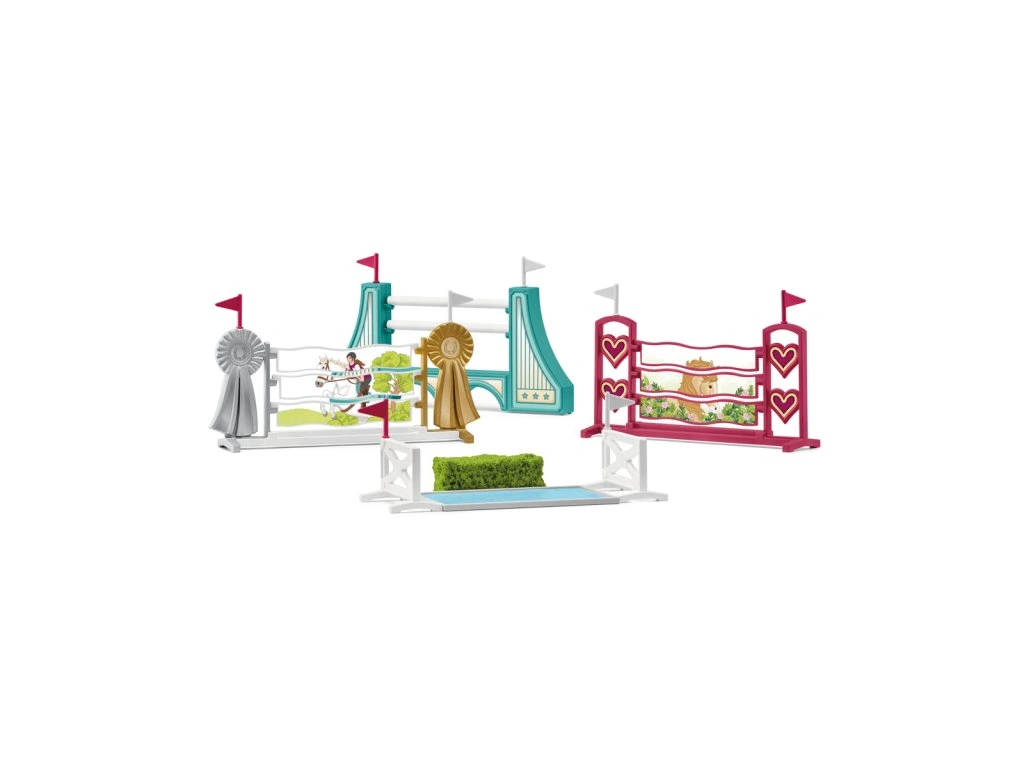 Tréning je zábava, ale víťazstvo na súťaži v skokoch cez prekážky je ešte lepšie! S prekážkami z kolekcie HORSE CLUB od schleich® zvládneš so svojím koňom oboje. Aby bol tréning čo najefektívnejší, môžeš výšku prekážok postupne zvyšovať. Takto môžeš svojho koňa pomaly zoznamovať so skokmi podľa toho, čo zvládne, a postupne zlepšovať jeho techniku. Až bude pripravený, môžete sa vydať na skutočnú prehliadku. Je tu dokonca priekopa a živý plot, pred ktorým je nádrž s vodou. Ešte že ste predtým tak trénovali! Rozmery: 19x15x6cm. Vhodné pre deti od 3 rokov.