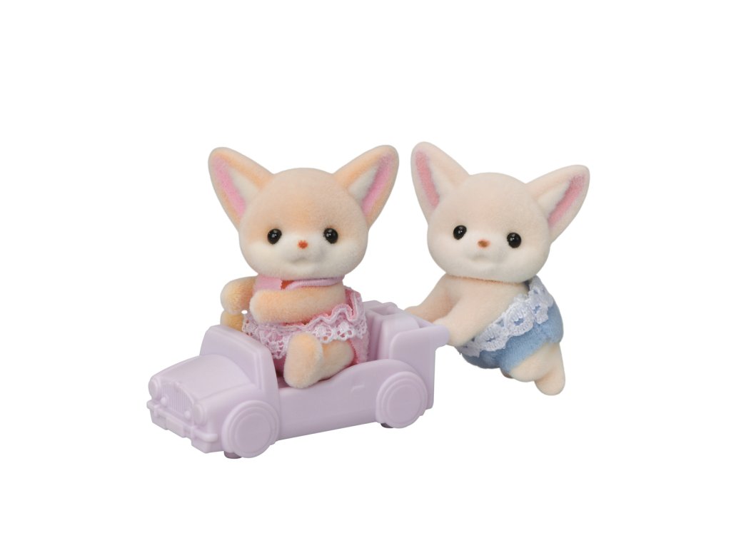 Dvojčatá z rodiny fenekov majú charakteristické veľké a špicaté uši. Sada obsahuje dve malé figúrky dvojčiat Rocca a Tary pokryté mäkkým semišovým kožúškom a tiež vozidielko v tvare autíčka. Dvojčatá sú oblečené do zábavných, farebných oblečkov s čipkou. Vozidielko je možné kombinovať s vozidlami z iných sád s dvojčatami. Hračky Sylvanian Families rozvíjajú predstavivosť a podporujú deti v hraní rolí. Hranie s figúrkami Sylvanian Families rozvíja kreativitu a učí emócie prostredníctvom vytvárania a rozprávania príbehov založených na každodenných skúsenostiach a pozorovaní sveta. Vyznačujú sa najvyššou kvalitou a výnimočným dôrazom na detaily. Figúrky Sylvanian Families majú pohyblivú hlavu. Balené v krabičke. Rozmery balenia: 12 x 7,5 x 3,5 cm. Vek: 3+.