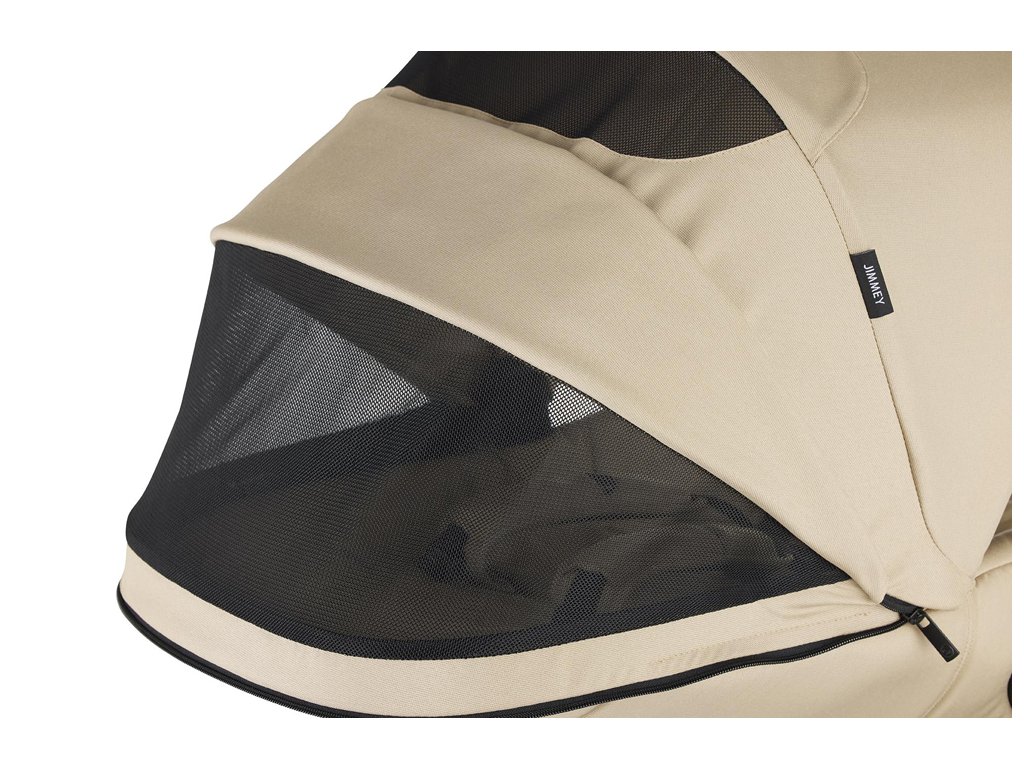 Nenechajte sa zastaviť počasím, s kočíkom Jimmey si môžete užiť každú jednu prechádzku. Vďaka extra veľkej strieške so slnečnou clonou, dvom vetracím okienkam a vetraniu v spodnej časti vaničky vás už počasie nikdy nezastaví. Žiadny deň nie je príliš chladný ani príliš horúci. A pre prvotriedne gumové pneumatiky s extra priľnavosťou nie je problémom ani sneh. Jimmey je mimoriadne obratný, s vynikajúcim odpružením a prechádzky s ním sú ako z rozprávky na akomkoľvek povrchu.