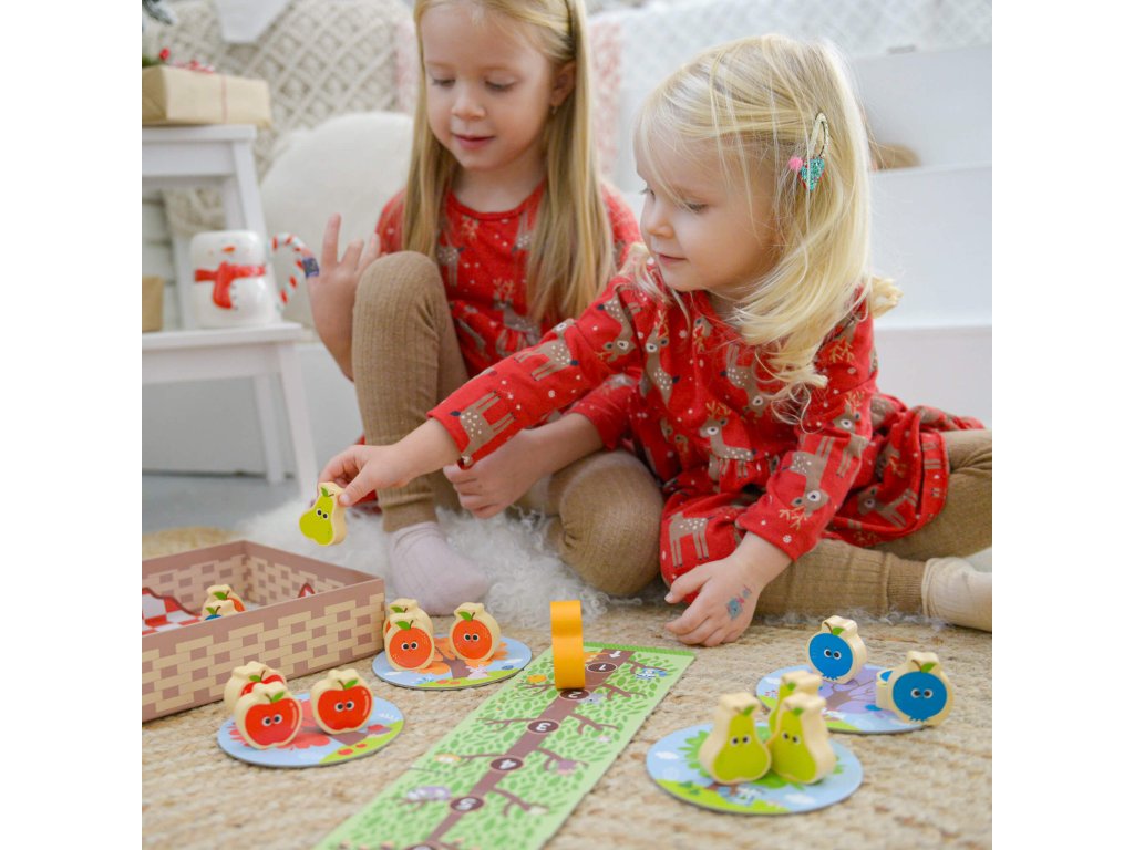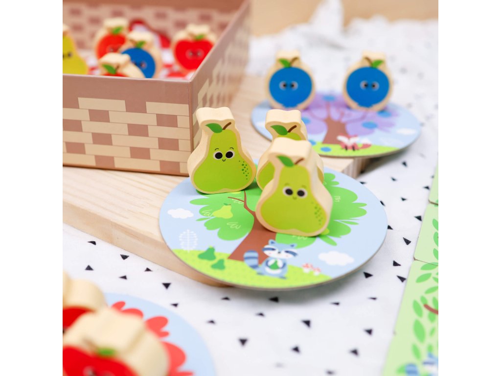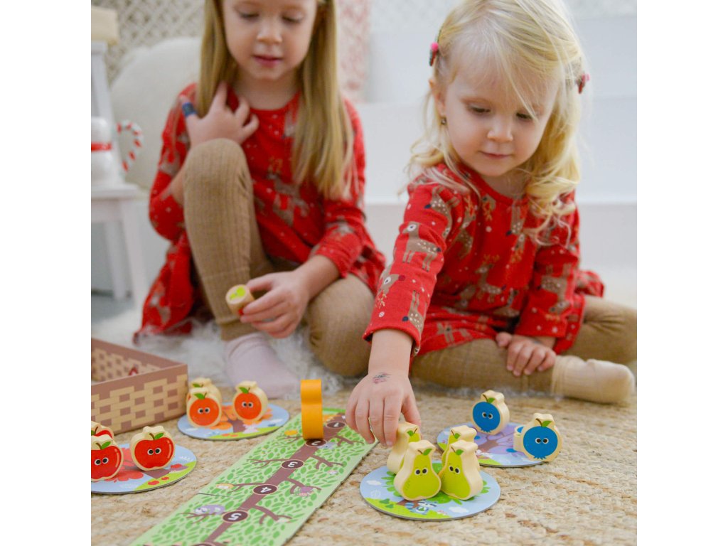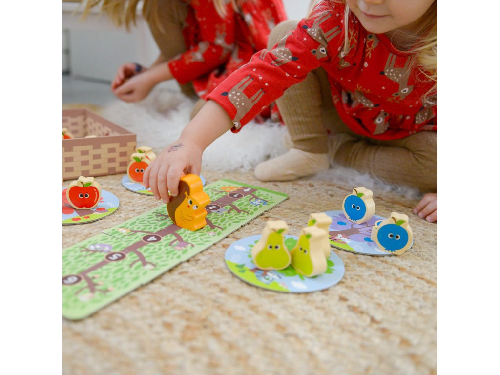 Hra Ovocný sad a veverička Prvá spoločenská hra pre najmenších Obľúbená spoločenská hra pre najmenších Ovocný sad a veverička od EDUkid zabaví deti už od 18 mesiacov. S veveričkou a dreveným ovocím sa môžu hrať samostatne, učiť sa farby, počítať, triediť, alebo môže hrať hru viacerých hráčov podľa priložených pravidiel. Hra obsahuje 1 figúrku veveričky, 1 kocku 12 ks ovocia, 4 stromy, košík na ovocie a hernú dosku pre veveričku v podobe stromu zloženú z 6 puzzle dielikov.Kooperatívna hra učí deti hrať spoločenské hry Hra ovocný sad a veverička je kooperatívna, to znamená, že všetci hráči hrajú spolu proti veveričke. Buď vyhrávajú všetci hráči, alebo veverička. Deti sa tak zoznamujú s hraním spoločenských hier veľmi jednoducho a lepšie znášajú prehru. Počas hry sa tiež učia základné pravidlá hrania spoločenských hier, ako je striedanie poradia jednotlivých hráčov alebo hod kockou. Drevené spoločenské hry a hračky EDUkid sú vyrábané s ohľadom na bezpečnosť detí a minimálny dopad na životné prostredie.Návod na hru nájdete tu!