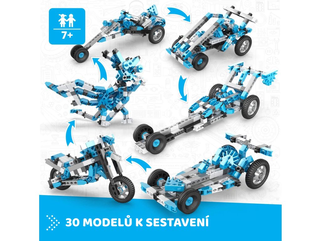 Stavebnica Maker Master 30v1 obsahuje: 210 dielov a zostavíte si z nich 30 úžasných hračiek ako vesmírnu raketu, lunárny vozík, zimný skúter, formulu, motorku a mnoho ďalších.