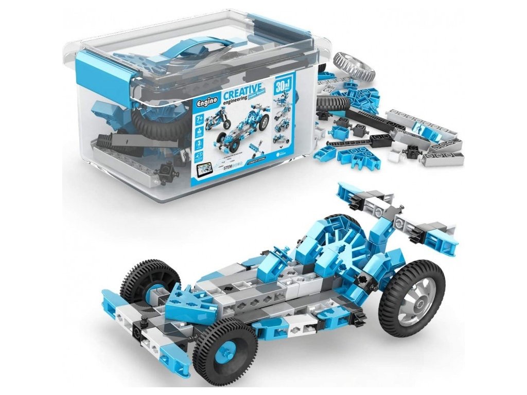 Kreatívna stavebnica Engino, ktorá pomáha rozvíjať myslenie, priestorové videnie a navrhovanie v 3D priestore. Oživte svoje výtvory a sledujte, ako sa pohybujú pomocou motora s prevodovkou s vysokým krútiacim momentom. Postupujte podľa farebného návodu, kde je popísaná časť produktov a zvyšné potom online alebo v 3D aplikácii zdarma na stiahnutie. Zostavujte si aj vlastné výtvory podľa vašej fantázie a pochváľte sa nimi nám alebo svojim priateľom. Celá stavebnica je uložená v plastovom kufríku pre ľahké skladovanie a prenášanie. Jednotlivé diely sa na seba jednoducho nacvakávajú.