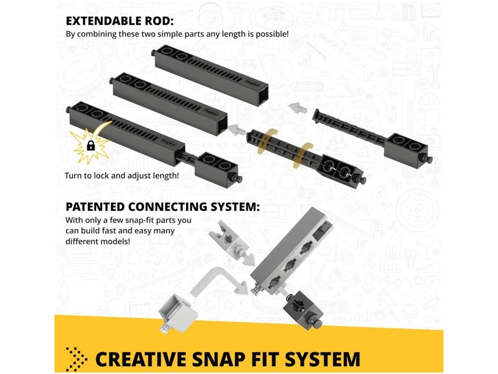 Tvojej fantázii sa nebudú klásť žiadne medze a môžeš vytvoriť niekoľko lietadiel a stíhačiek, niekoľko formulí a dragsterov, veľké rýpadlá alebo Jeepy a dokonca aj kočíky či štvorkolky.