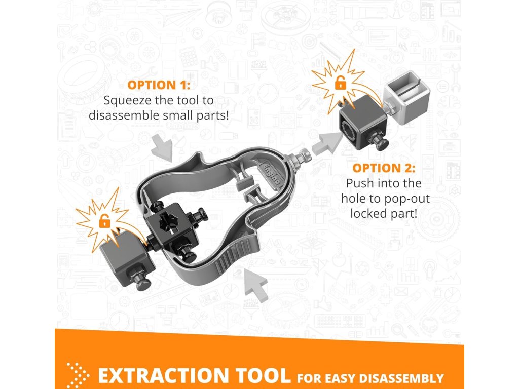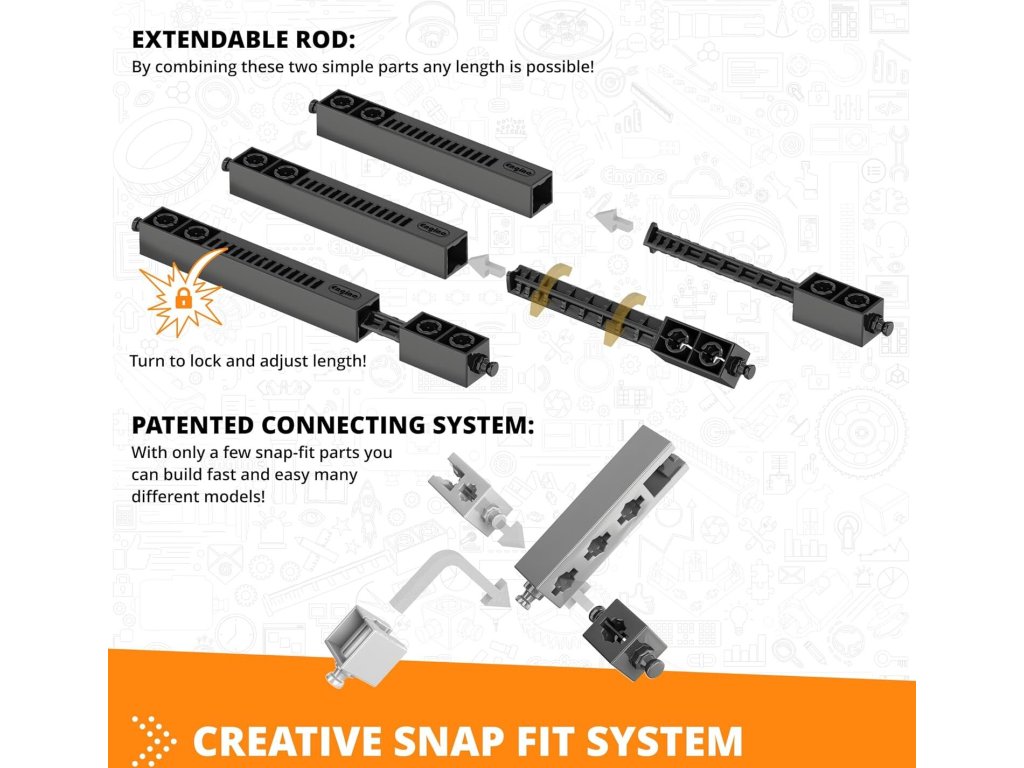 Samozrejme, modely sa dajú rozobrať a používatelia môžu prekonfigurovať diely ENGINO, aby mohli rozvíjať svoje nápady.