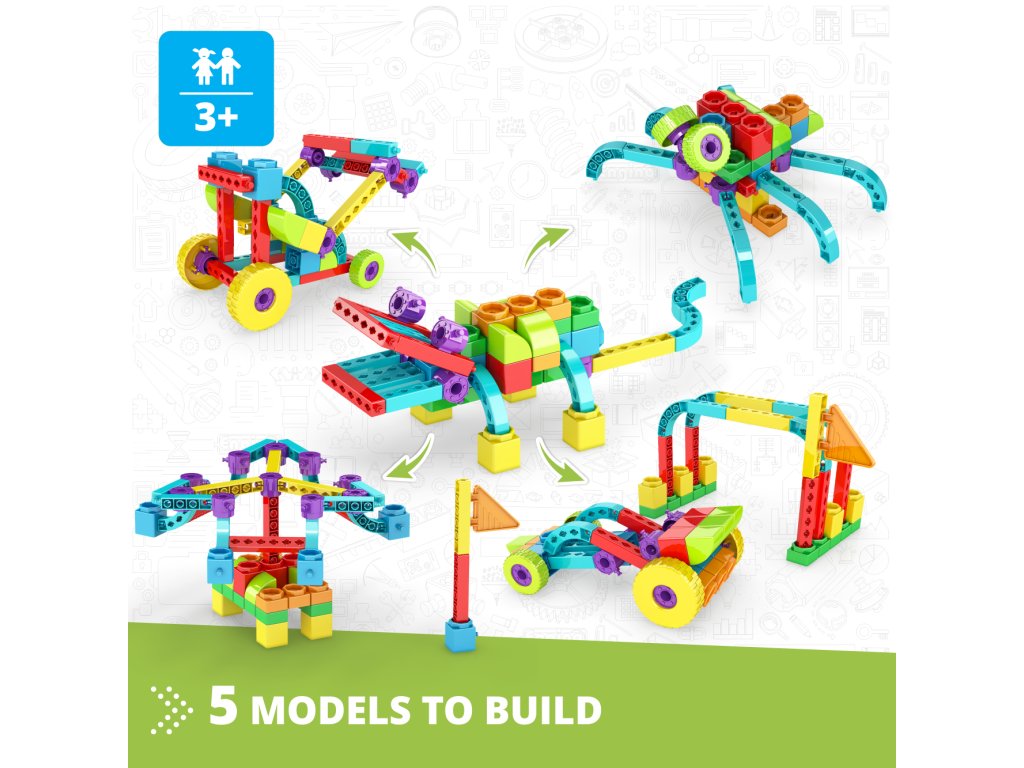 QBOIDZ – Alligator sa dodáva s radom komponentov, ktoré vyhovujú rôznym vývojovým štádiám. Aj keď sú niektoré zložité modely vhodné pre 2-ročné deti, ponúkajú obohacujúce zážitky pre deti vo veku od 4 do 7 rokov. Táto rozmanitosť zaisťuje, že cesta za učením každého dieťaťa bude zábavná aj vzdelávacia.