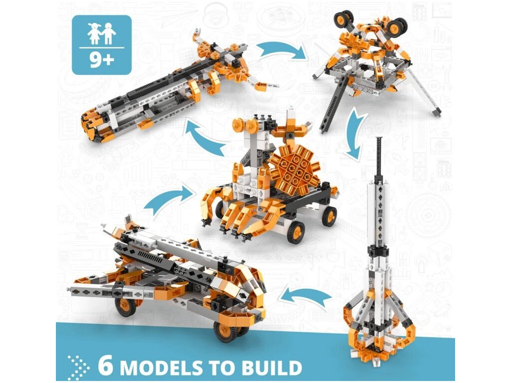 Postav 5 modelov, ako je raketa, pristávací tanier, váha, vesmírny robot a raketoplán.
