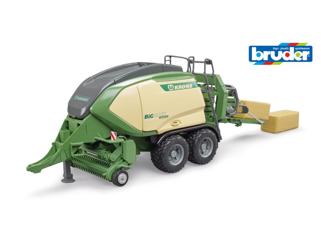 BigPack 1290 je špičkový model od KRONE a je novinkou v poľnohospodárskom rade BRUDER. Rovnako ako originál zaujme aj hračka inovatívnymi funkciami. Zberač je možné sklopiť a je poháňaný bočnými kolesami. Bočné klapky je možné otvoriť a umožňujú prístup k podrobnej mechanike. Cez strednú klapku je možné vložiť 2 veľké balíky a lis ich automaticky dopraví na vyhodenie. Tento skvelý nový model od BRUDER pasuje na všetky traktory radu 2000, 3000 a 4000. Pre ešte väčšiu zábavu je možné pridať príslušenstvo hranatého balíka (02342 - nie je súčasťou). Mierka: 1:16. Rozmer balenia: 19,5 x 26 x 56,5. Vek: 4+