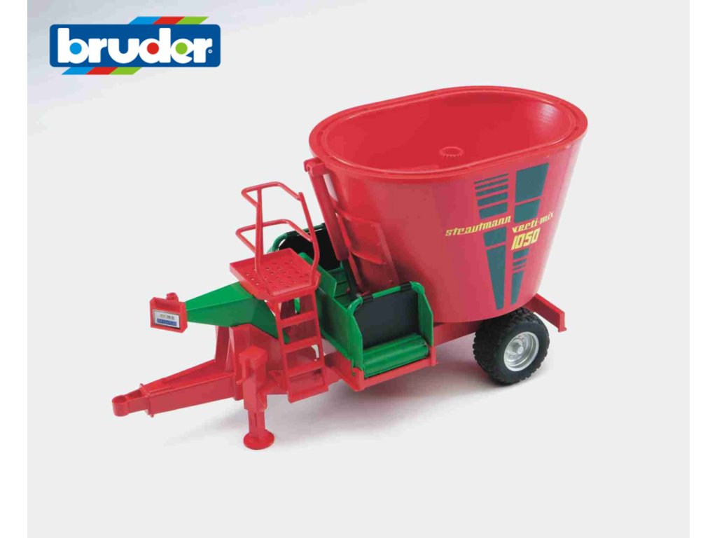 Príslušenstvo k vozidlám BRUDER - miešačka na krmivo. Plne funkčná a pripojiteľná za ľubovoľný traktor. Pohyblivý dopravný pás a rotujúce nože v strede z PVC. Vyrobené z kvalitného ABS plastu. Rozmery: 35 x 14 x 18cm. Vek: 3+