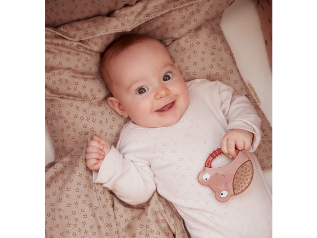 Malá rúčka s textúrou uľahčuje vášmu drobcovi chytanie hryzadla. Hryzadlá v tvare zvieratiek sú navrhnuté so zaujímavými textúrami, ktoré stimulujú ústa a ruky vášho dieťatka. S malými zvončekmi vo vnútri fungujú zároveň aj ako hrkálky.
