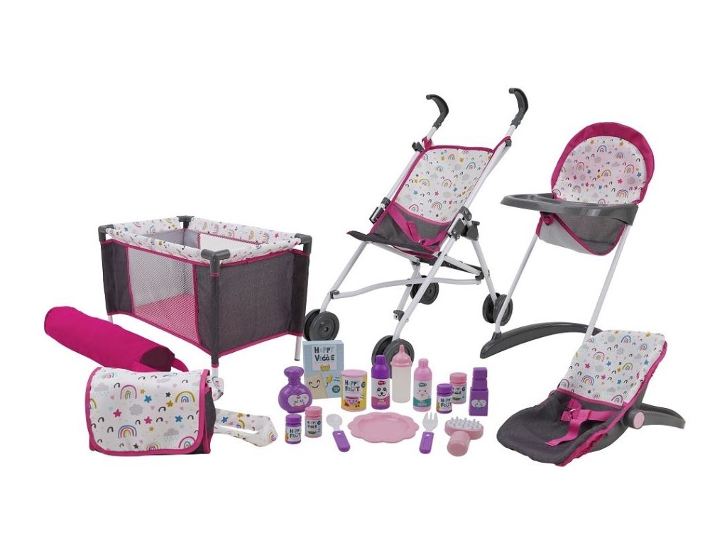 Veľký herný set potrieb pre bábiky vhodné do cca. 46 cm. Súprava obsahuje 21 kusov. Pre deti od 3 rokov.