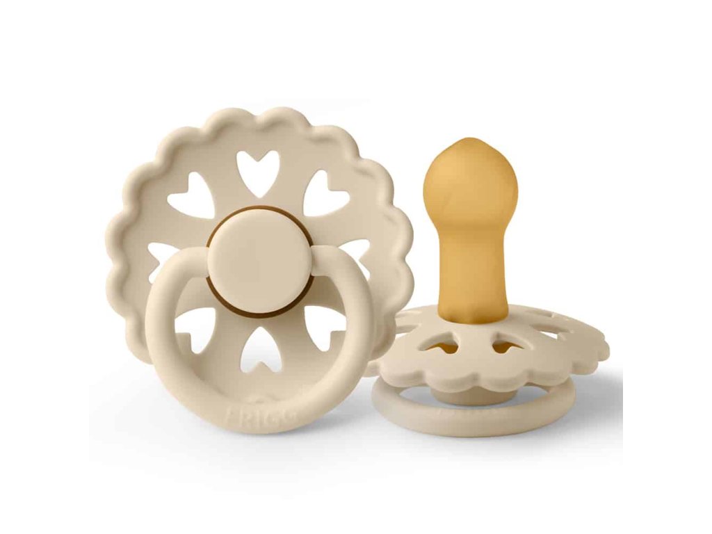 Kolekcia cumlíkov FRIGG Fairytale je inšpirovaná umeleckou tvorbou dánskeho autora H.C. Andersena. Vrúbkované okraje a malé srdiečka vo vnútri štítu napodobňujú jeden z jeho papierových výstrižkov. Každá farba cumlíka je pomenovaná podľa jeho známych rozprávok, ktoré dodávajú cumlíkom nádych fantázie. Tento mimoriadne krásny cumlík, s moderným dizajnom a elegantnými detailmi, upúta pozornosť každej štýlovej mamičky.