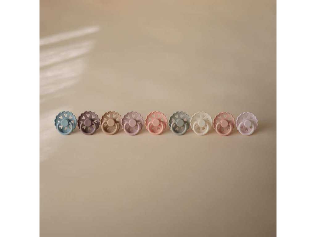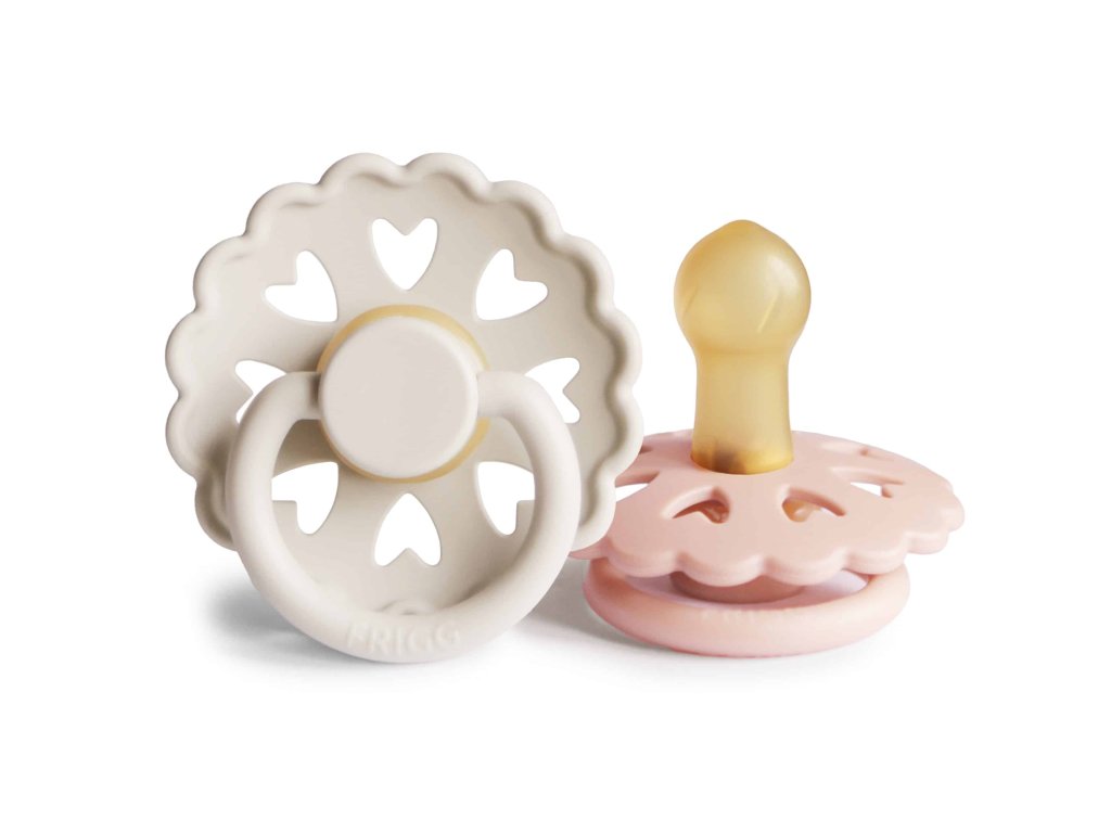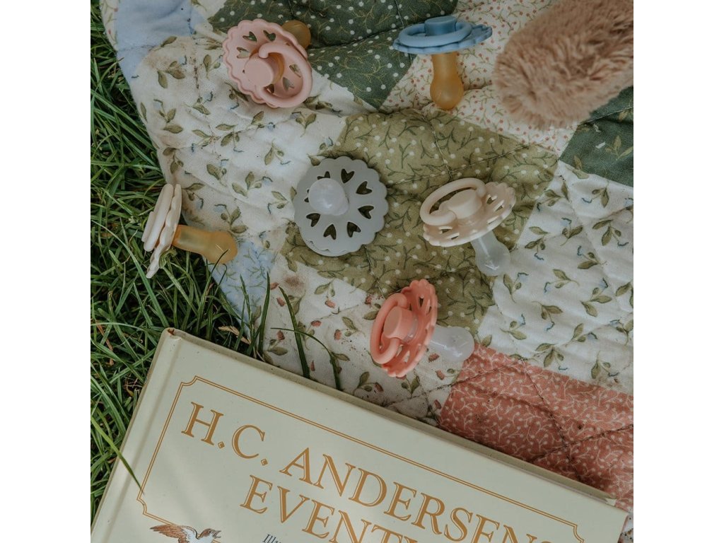 Kolekcia cumlíkov FRIGG Fairytale je inšpirovaná umeleckou tvorbou dánskeho autora H.C. Andersena. Vrúbkované okraje a malé srdiečka vo vnútri štítu napodobňujú jeden z jeho papierových výstrižkov. Každá farba cumlíka je pomenovaná podľa jeho známych rozprávok, ktoré dodávajú cumlíkom nádych fantázie. Tento mimoriadne krásny cumlík, s moderným dizajnom a elegantnými detailmi, upúta pozornosť každej štýlovej mamičky.