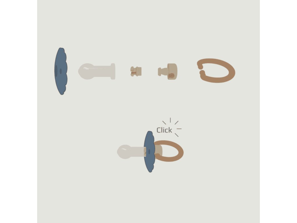 Nový Click-lock™ systém odlišuje cumlík FRIGG od akéhokoľvek iného cumlíku na trhu. Vďaka novému 4-krokovému procesu spájania jednotlivých častí cumlíka je možné cumlík zostaviť jednoduchým kliknutím, bez použitia akejkoľvek sily. Vďaka tomu je cumlík ešte odolnejší ako predtým.