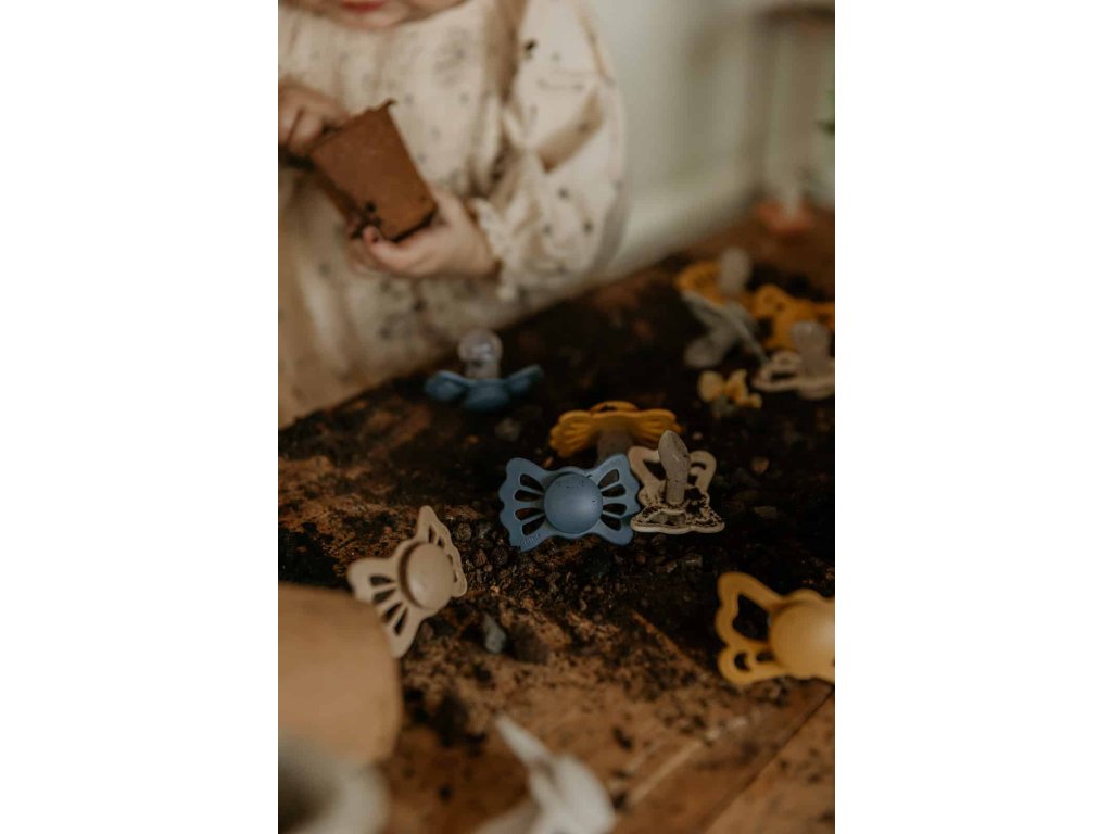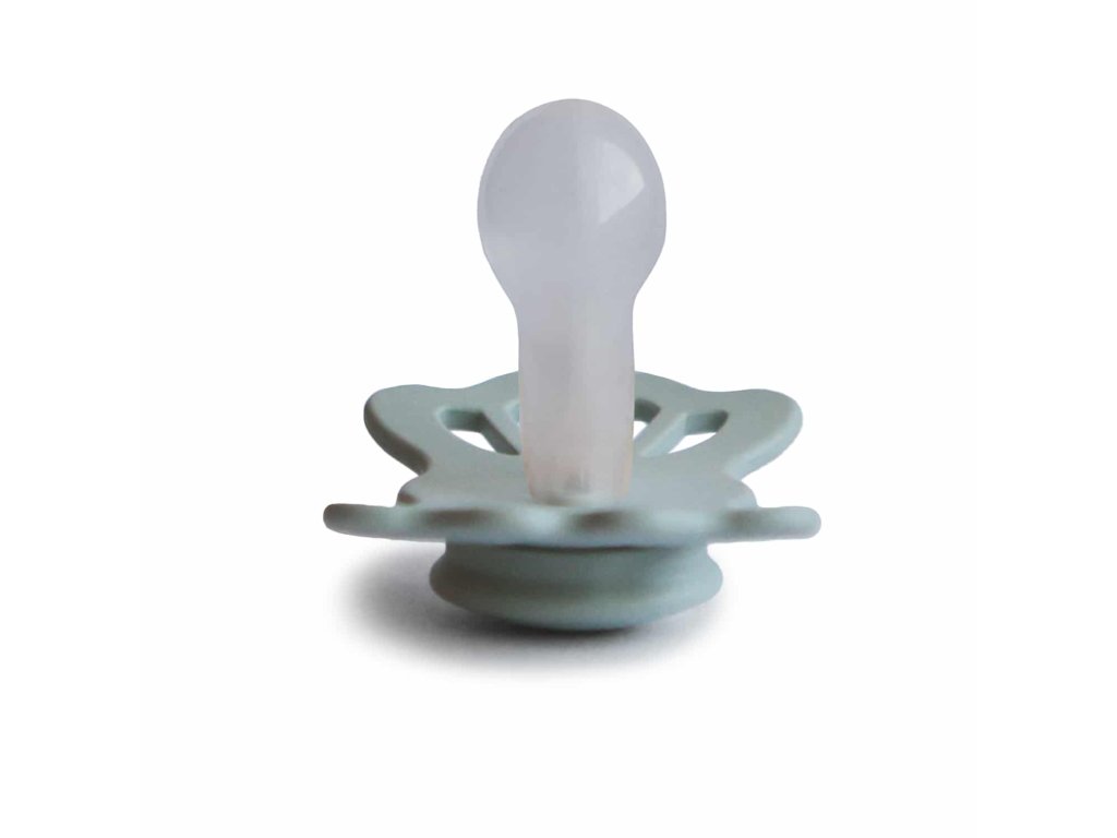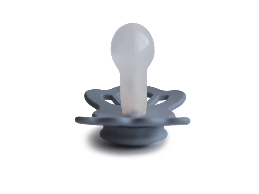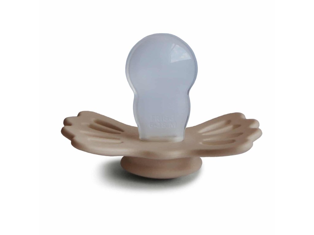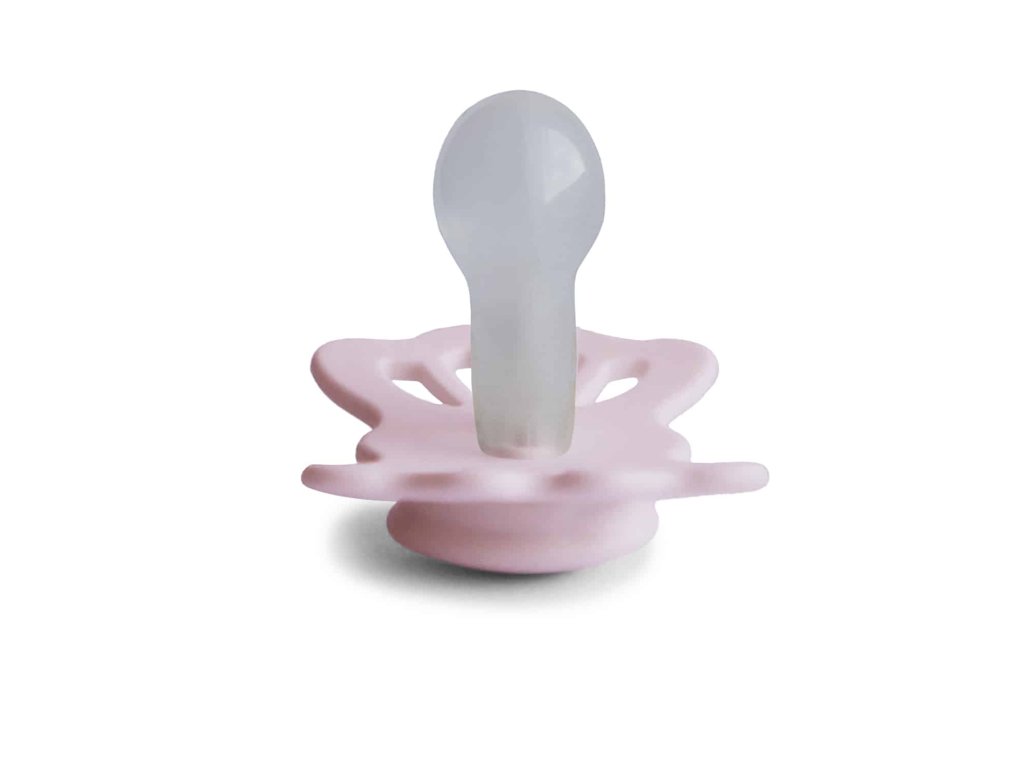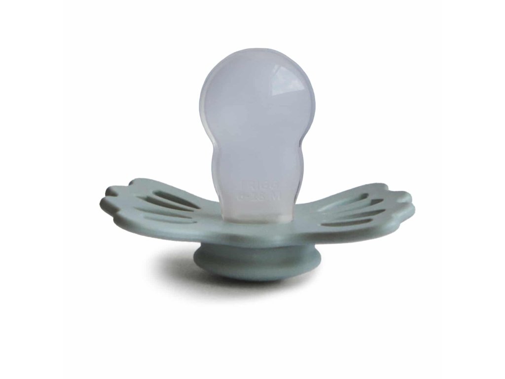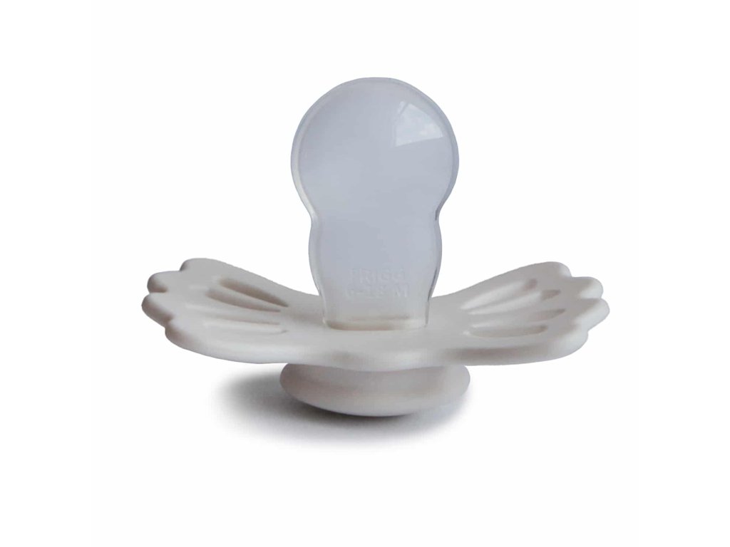 FRIGG Lucky sú symetrické cumlíky s mierne splošteným cumlíkom v tvare slzy. Symetrické cumlíky vždy správne sedia v ústach dieťaťa, bez ohľadu na to, či sú otočené nahor alebo dole. Cumlíky sú navrhnuté s plochejším krkom, aby sa znížil tlak na podnebie, ďasná a tiež znížilo riziko krivých zubov a krivého zhryzu. Ortodontický dizajn je ideálny pre podporu správneho vývoja detských zubov, čeľuste a podnebia. Každý cumlík je strojovo testovaný na závadnosť, aby sa k našim najdôležitejším zákazníkom dostal vždy perfektný produkt. FRIGG Lucky je inšpirovaný štvorlístkom. Štít má zvlnené okraje, ktoré sú v tvare listov štvorlístka a tieto listy fungujú ako vzduchové otvory. Okrúhly stred zvýrazňuje eleganciu cumlíkov. Štvorlístok je všeobecne uznávaným symbolom šťastia kvôli svojej vzácnosti. FRIGG Lucky sú vyrobené tak, aby poskytovali deťom upokojujúce pocity a prinášali im šťastie. Tieto cumlíky sú kúzlom pre šťastie, ktoré rozjasní život každého dieťaťa. Nový Click-lock™ systém odlišuje cumlík FRIGG od akéhokoľvek iného cumlíku na trhu. Vďaka novému 4-krokovému procesu spájania jednotlivých častí cumlíka je možné cumlík zostaviť jednoduchým kliknutím, bez použitia akejkoľvek sily. Vďaka tomu je cumlík ešte odolnejší ako predtým. FRIGG je 100% dizajnovaný a vyrobený v Dánsku ako jediná značka cumlíkov na svete! Každý cumlík je zároveň vyrobený na princípe zero-waste, čím sa minimalizuje odpad materiálu vďaka možnosti recyklácie. Cumlíky sú vyrábané s maximálny ohľadom na životné prostredie, a zároveň s dôrazom na uspokojenie potrieb najmenších detí. FRIGG kladie dôraz aj na bezpečnosť - cumlíky sú vyrábané bez BPA, PVC a ftalátov, každý cumlík podstupuje stretch a vacuum test pred uvedením do predaja a sú vyrábané podľa najprísnejšej normy EN1400-A2.   Detaily cumlíka FRIGG Lucky
