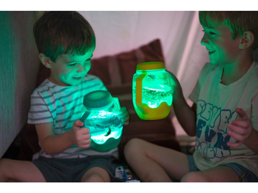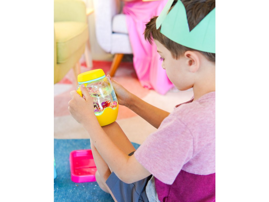 Senzorická fľaša Honey Bee Fascinujúca fľaša, ktorá upúta zmysly Objavte kúzlo senzorickej hry s Glo Pals fľašou v odtieni Honey Bee! Táto interaktívna nádoba prináša deťom fascinujúci zážitok plný svetiel a farieb, ktorý podporuje ich zmyslový vývoj, kreativitu a zároveň má upokojujúci účinok.Rozžiarte detskú predstavivosť Vodou aktivované svetlá: Po naplnení vodou sa fľaša rozžiari upokojujúcimi farbami, čím vytvára magickú atmosféruDotykové ovládanie: Jemným poklepaním na nádobu alebo trasením môžu deti meniť farby podľa svojej náladyBezpečný dizajn: Nádoba má protišmykové rukoväte a tesniace viečko, ktoré zabraňuje vyliatiu obsahuPodpora zmyslového vývoja: Stimuluje vizuálne vnímanie, jemnú motoriku a rozpoznávanie fariebPrispôsobiteľná hra: Deti môžu do nádoby pridávať rôzne predmety (nie sú súčasťou balenia) - napr. trblietky, figúrky, Glo Pals Senzorické kocky a vytvárať si vlastné senzorické zážitkyIdeálny darček pre malých objaviteľov Vhodné pre deti od 18 mesiacov: Navrhnuté s ohľadom na bezpečnosť a potreby najmenšíchJednoduchá údržba: Po hre stačí nádobu vyprázdniť a umyť ručne mydlovou vodouEnergeticky úsporné: Na prevádzku sú potrebné 3 AAA batérie (nie sú súčasťou balenia), ktoré vydržia dlhšie vďaka funkcii automatického vypnutia pri obrátení nádobyMagická fľaša plná svetiel a fantázie Glo Pals Senzorická fľaša Honey Bee je perfektným darčekom pre deti, ktoré milujú svetlá, farby a interaktívnu hru. Ponúka deťom príležitosť prirodzene objavovať nové podnety cez dotyk, pohyb a farby. Podnecuje ich predstavivosť, jemnú motoriku a zároveň pôsobí uvoľňujúco v momentoch, keď potrebujú spomaliť.
