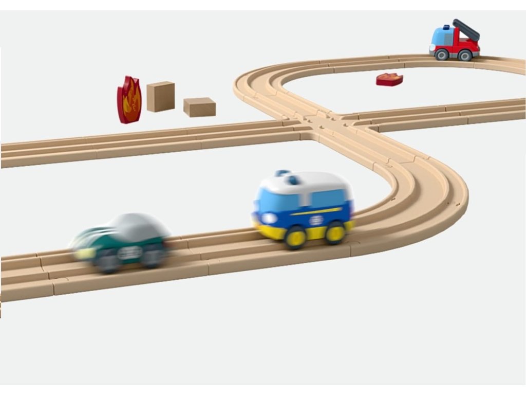 Vďaka sofistikovanému zotrvačníkovému motoru stačí rýchle zatlačenie, aby sa sanitka, hasičské a policajné auto prehnali po fervejách a veľmi rýchlo dorazili do cieľa. Vozidlá tiež dávajú skvelé vizuálne akcenty.