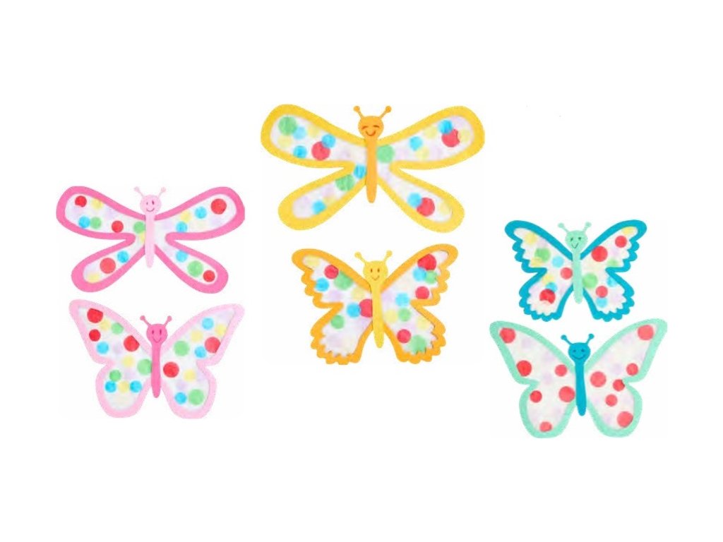 Kreatívna sada na vytvorenie obrázkov lepením s motívom motýľov, vhodné pre väčší kolektív aj do materských škôl.