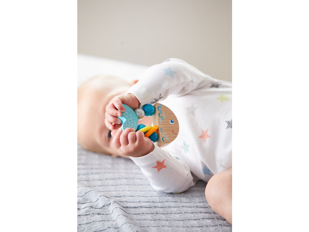 Haba Drevená hrkálka a motorická hračka pre najmenších Rybka