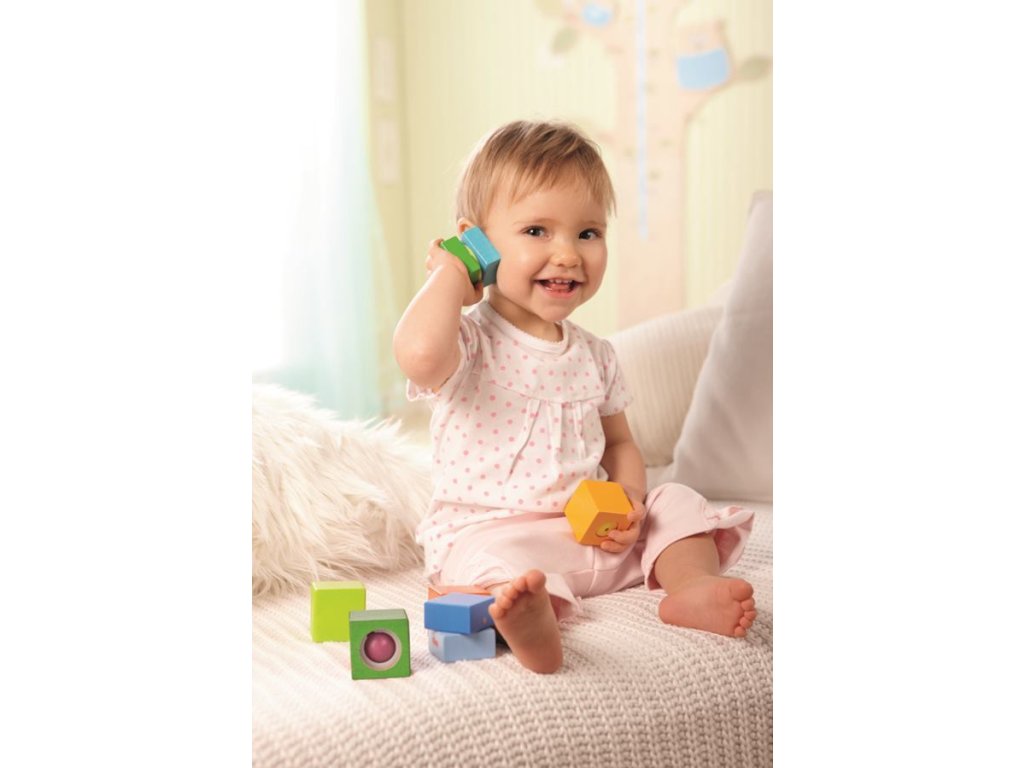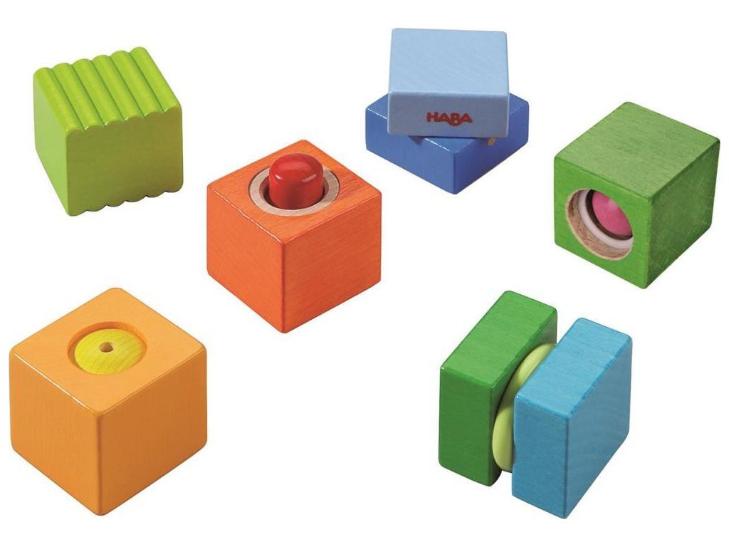 Haba Drevené kocky 6 ks na rozvoj motoriky spoznávanie farieb so zvukmi
