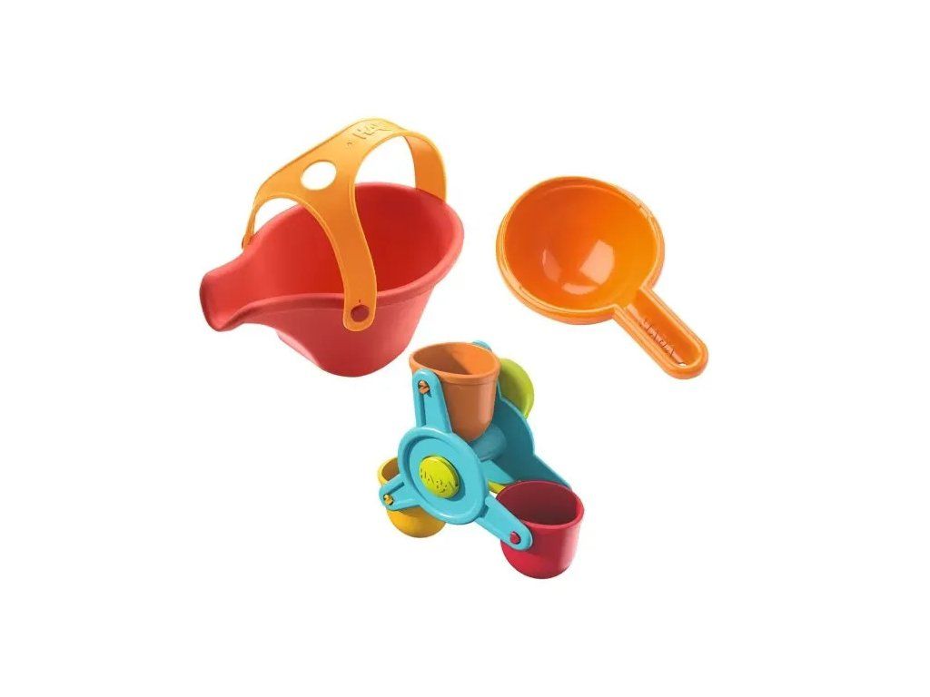 Obsah sady:– naberačka– vodné koliesko– červená konvička na zalievanie
