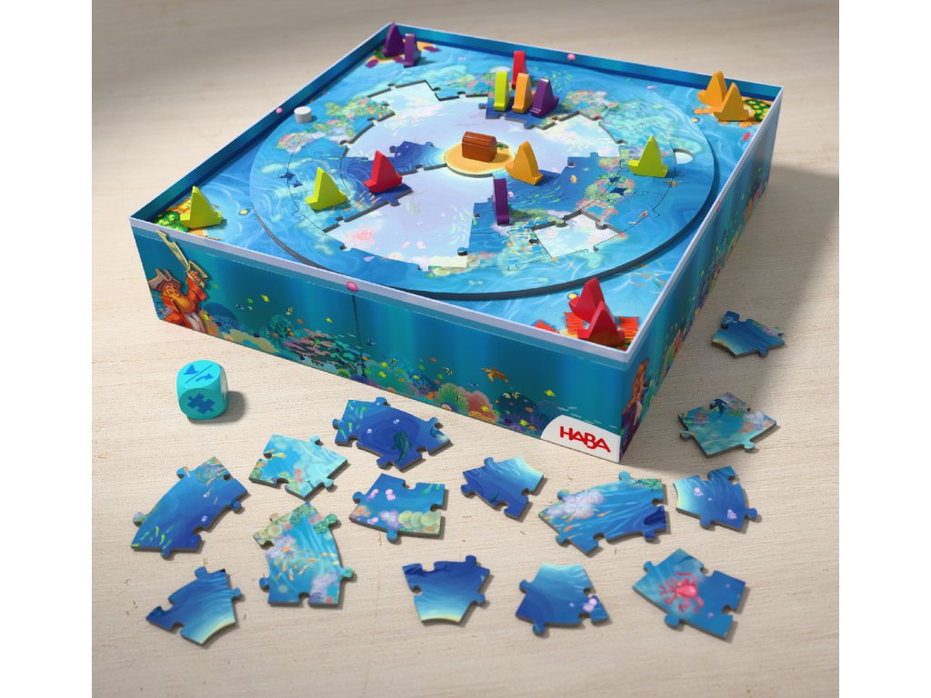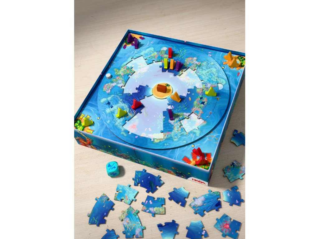 Kto šikovne poskladá správne cesty, s trochou šťastia na kockách a ako prvý dorazí na Ostrov pokladov, vyhráva.