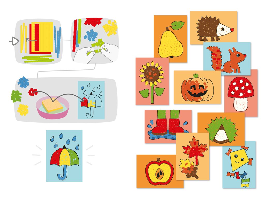 S aktivitami, ako je kreslenie, strihanie, lepenie a skladanie, sa každá súprava zameriava na rozvoj jemnej motoriky, koncentrácie a kreativity.