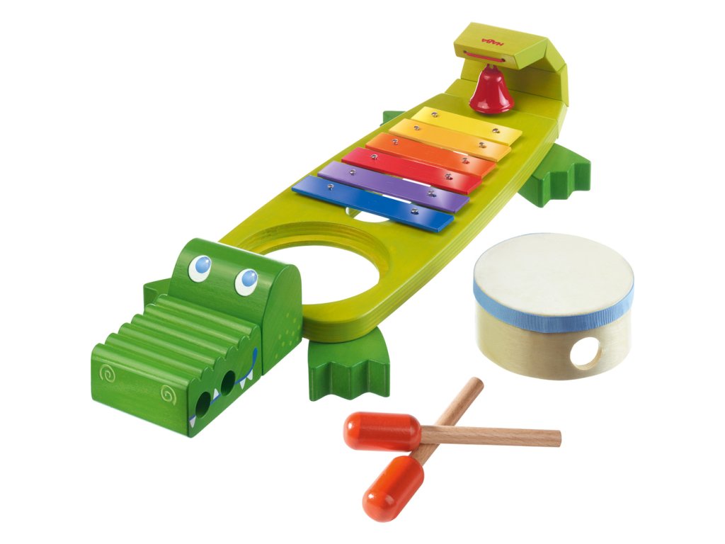 Korunou všetkého je zábavný cinkajúci zvonček pripevnený na chvoste. Zvukový krokodíl od spoločnosti HABA pozýva deti od 3 rokov hrať hudbu a zároveň ich posilnuže pre rytmus.