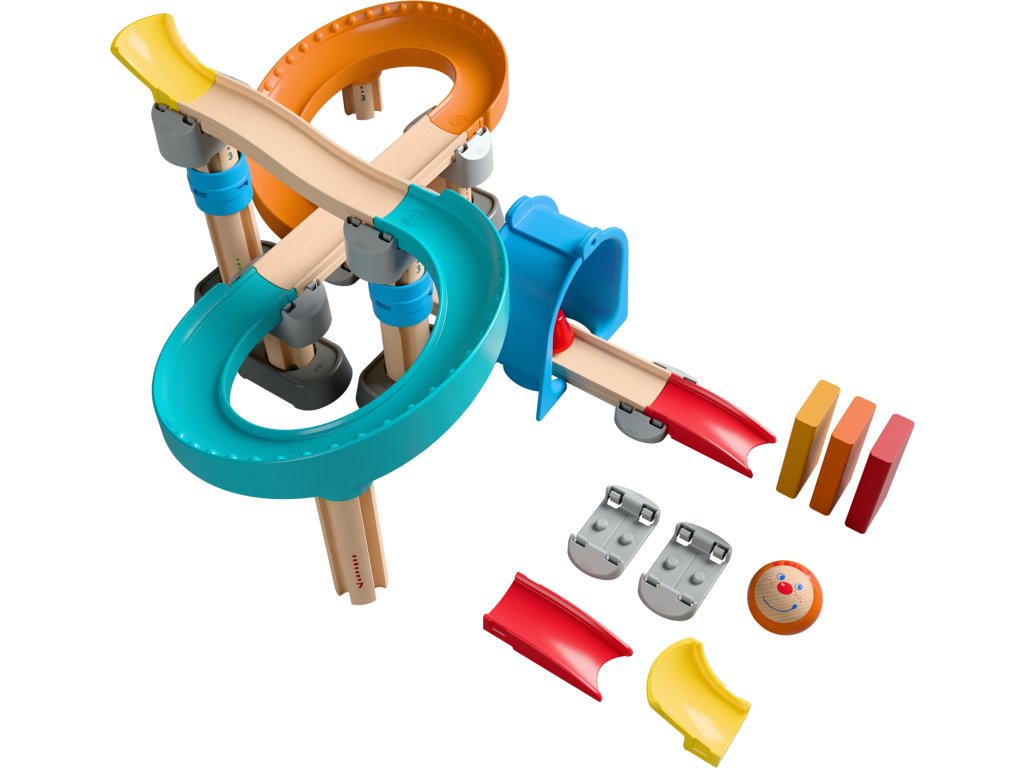 Zatiaľ čo tie najmenšie deti rady objavujú loptu a s úžasom ju sledujú, ako sa kotúľa, tie staršie chcú pomôcť vybrať dieliky a postaviť ju. Takto sa z jednej rovnej dráhy môže postupne vyvinúť zložitá dráha – vždy prispôsobená príslušnému vývojovému štádiu dieťaťa. Rôzne prvky poskytujú extra zábavu.
