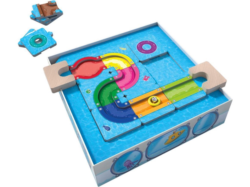 Cieľom je posunúť pestrofarebné kúsky šmýkačky tak, aby po nej Milo Marble mohol svišťať.