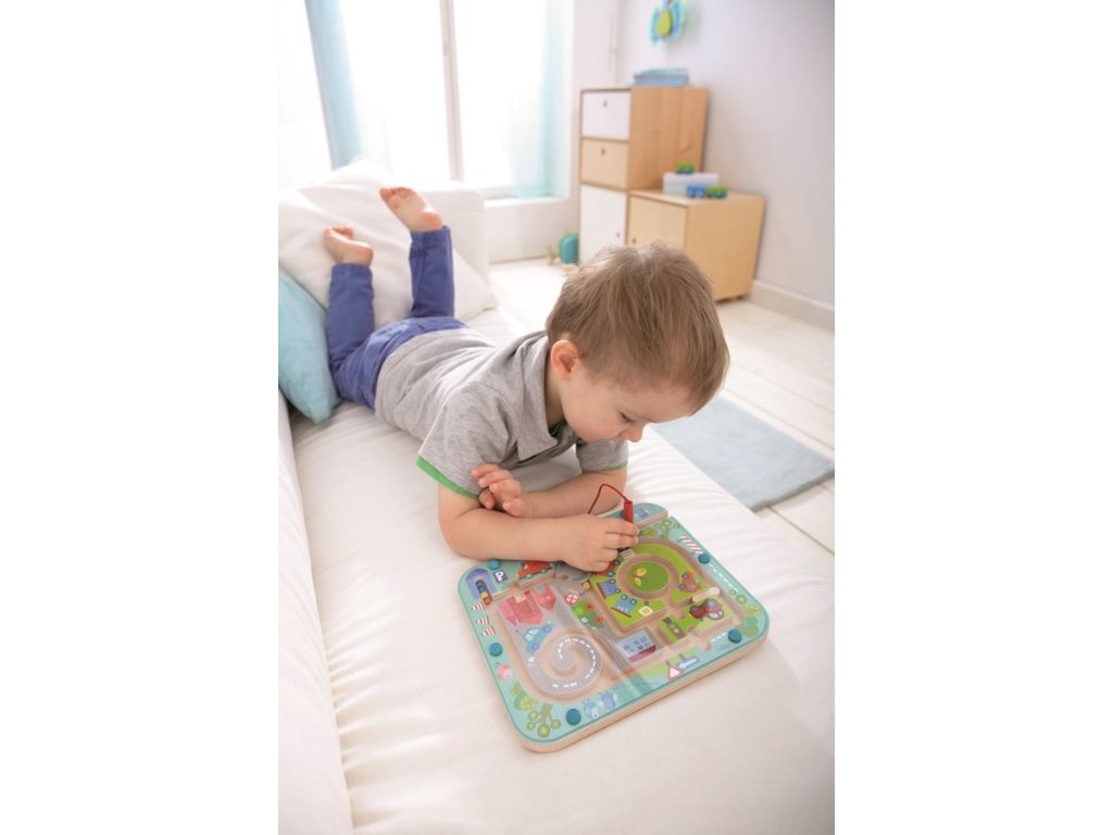 Tento guľôčkový labyrint od nemeckého výrobcu firmy Haba, šikovným spôsobom naučí chlapcov aj dievčatá schopnosť koncentrácie, trpezlivosti a zlepší ich jemnú motoriku.