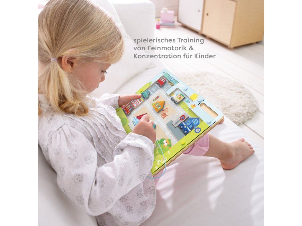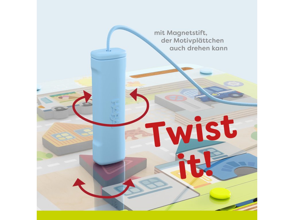 S magnetickým perom môžu deti otáčať svet tak, ako chcú. Magnetické obrázkové dlaždice sa bez námahy kĺžu po doske, čo deťom umožňuje ich usporiadanie znova a znova. Či už ide o navádzanie auta na parkovacie miesto alebo zastavenie pri elektrickej nabíjacej stanici, nápaditá hra je vždy v pohybe. Najlepšia časť? Je tu dostatok voľného miesta pre vozidlá, značky a ďalšie, aby sa mohli pohybovať nielen dopredu a dozadu, ale aj otáčať o celých 360° v ľubovoľnom smere. Plnou rýchlosťou vpred!