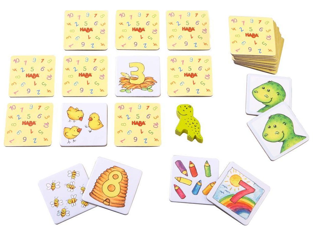Pomáhajú obrázky na kartách: Symboly na kartách s počtom a množstvom patria vždy k sebe. A nechýba ani vtipné číslo dinosaura. Kto ho má na konci, tomu pomôže vyhrať.