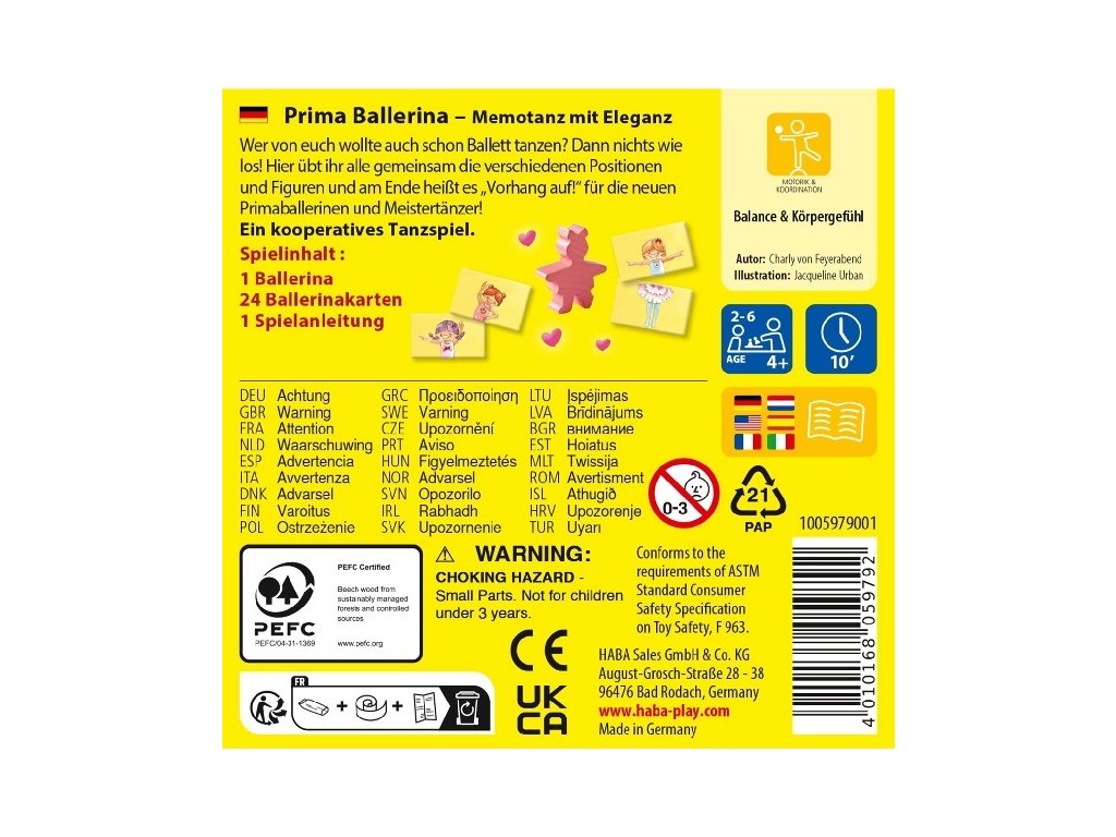Hra obsahuje karty balerín. Jedna karta zobrazuje vrchnú polovicu tela od hlavy po pás a druhá karta spodnú polovicu tela od pása nadol. Hráči odkrývajú postupne dvojice kariet a napodobňujú zobrazené baletné figúry.