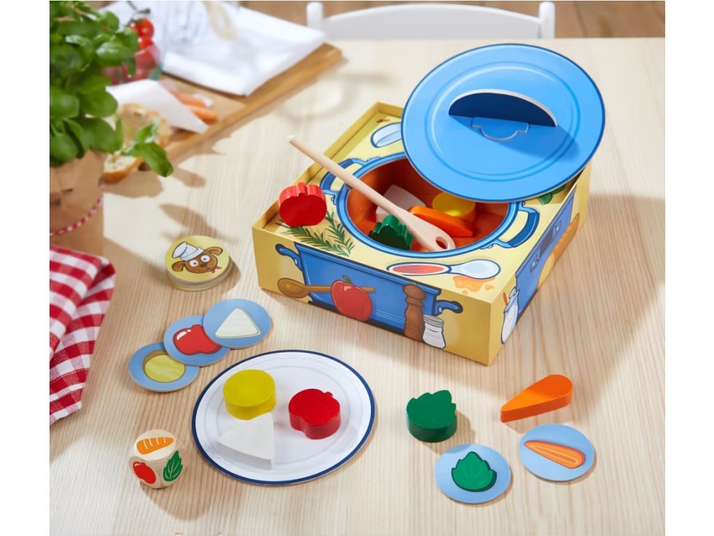 Krabica od hry sa zmení na hrniec na varenie. Zábavná hra pre najmenšie deti.