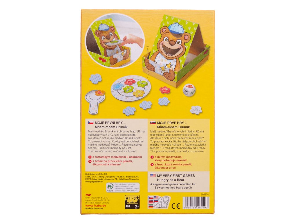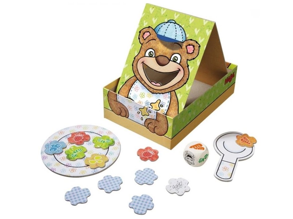 Pripravte si porcie jedla na tanierik, hoďte kockou a pomocou lyžice nakŕmte medvedíka podľa toho, aké jedlo sa zobrazí na kocke.
